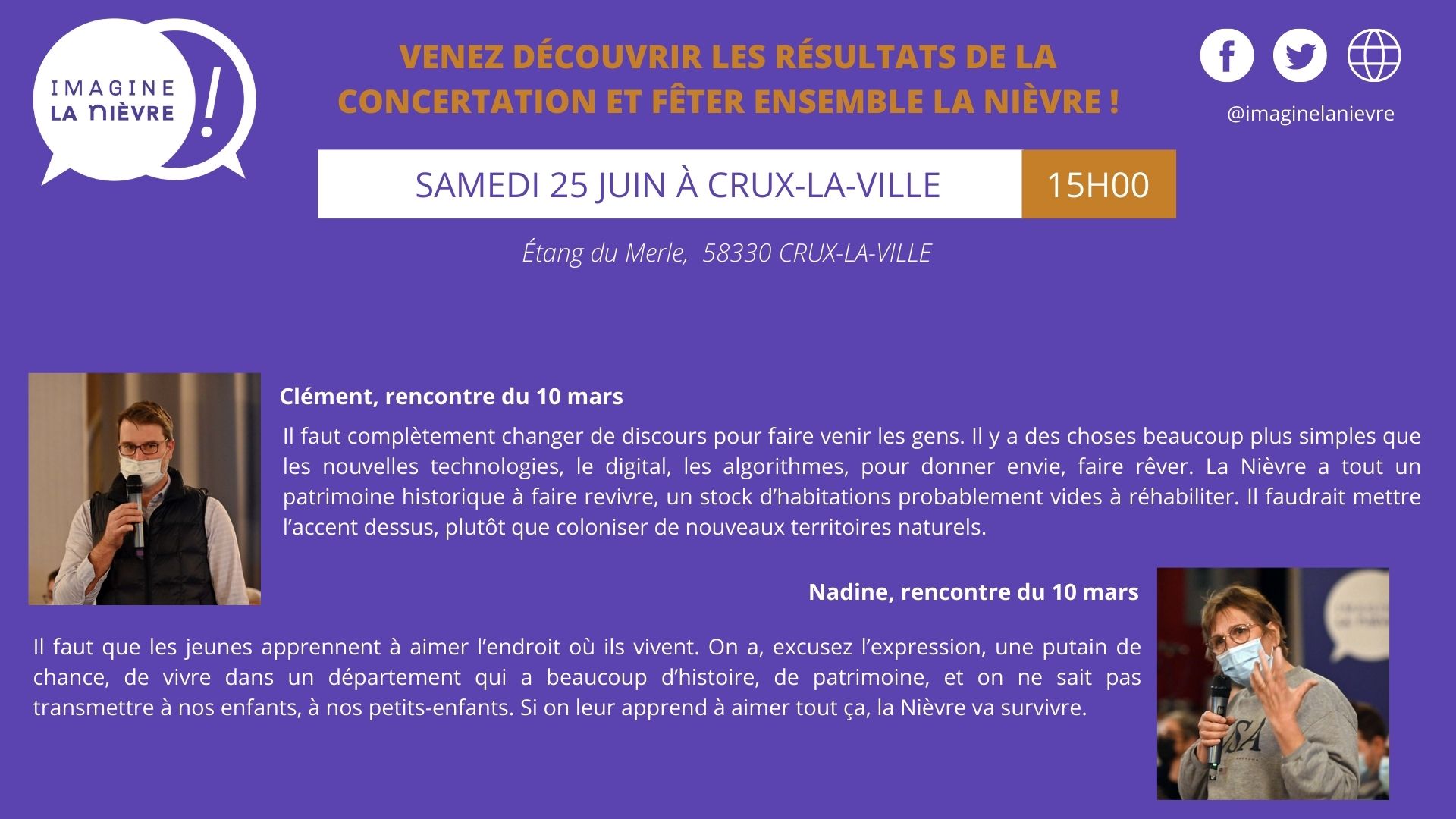 Vous avez imaginé la Nièvre de demain à travers 444 propositions, venez découvrir les résultats de la concertation et fêter ensemble la Nièvre :