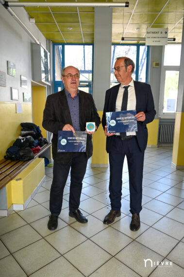 Le président du Conseil départemental, Fabien Bazin, s’est rendu cette semaine au collège Les Deux-Rivières de Moulins-Engilbert (180 élèves), en compagnie de Farid Hadjab, directeur de l’Education, pour remettre officiellement les capteurs au principal de l’établissement, Roger Boulin.
