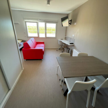Ce bâtiment flambant neuf de 1 500 m² jouxtant la maternité devient un atout indispensable pour la venue des internes au centre hospitalier. Ses 40 chambres meublées réparties sur 3 niveaux et son espace de vie commune de 150 m² (salle à manger et salon donnant sur une terrasse) offrent des conditions idéales et souvent requises par les étudiants quand ils choisissent leur lieu d’internat. L’ancien site, composé uniquement de 10 chambres, ne correspondait plus à leurs attentes ; ils privilégient le cadre, la qualité du service, la proximité, l’accueil et la convivialité.