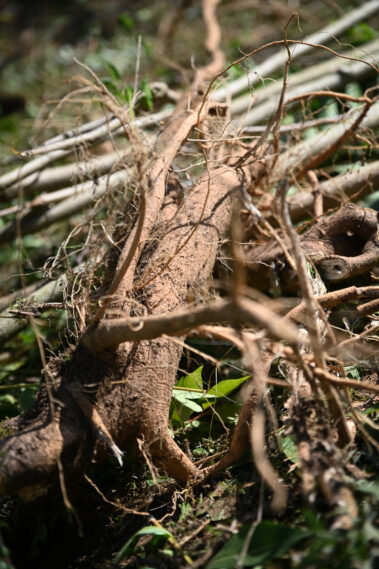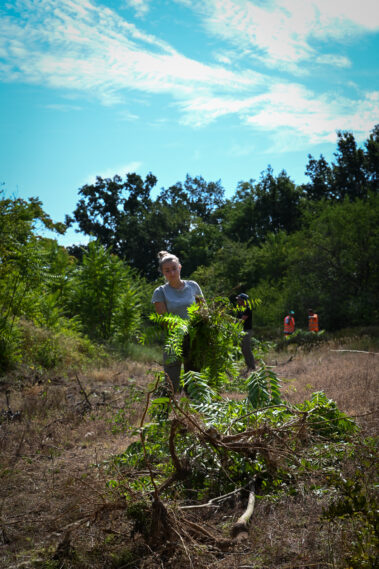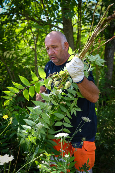 L’équipe veille à extirper les racines sans les casser, « sinon l’ailanthe repousse », précise Thibaud Wyon. C’est par son vigoureux système racinaire que l’ailanthe glanduleux s’est multiplié, à partir d’une dizaine de pieds mères, en quelques années. Importée d’Asie au XVIIIe siècle pour héberger la culture du ver à soie, la plante a pris ses aises un peu partout en France, au point d’être « blacklistée » parmi les espèces envahissantes exotiques. Son défaut ? Proliférer en étouffant la « concurrence » jusqu’à régner en monoculture…