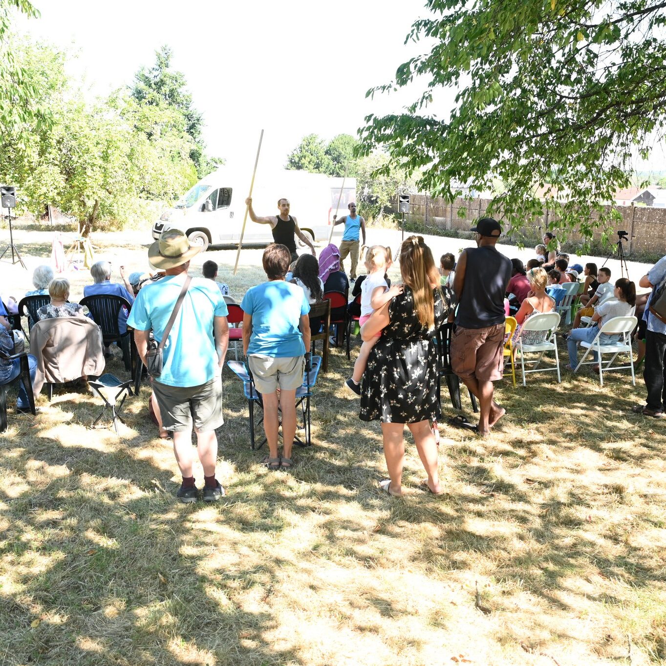 Ce matin, le camion faisait une halte au village d’enfants Pierre et Paule Saury, où le public, venu nombreux, a pu assister à une représentation d’Advaïta L Cie. C’est à l’ombre de grands cerisiers, que, durant 25 mn, les 2 danseurs ont évolué en proposant une chorégraphie de danse contemporaine, un extrait de leur spectacle, La face B (l’équilibre de la bicyclette).