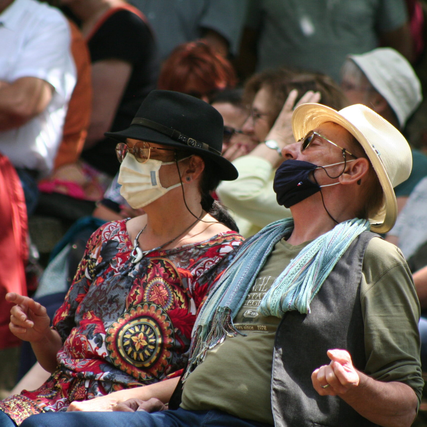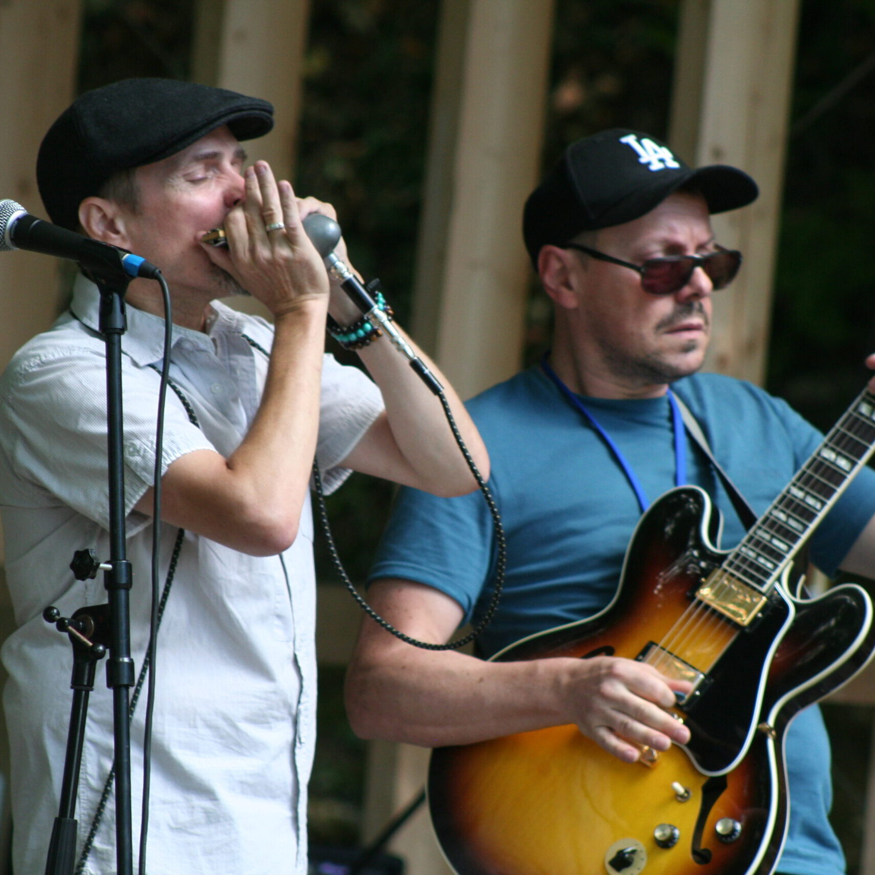 Appuyé sur une rythmique à la rondeur impeccable, le duo convoque les grands maîtres du blues, du bayou à Chicago – Muddy Waters, Otis Rush, Earl Hooker –, devant une bonne centaine de spectateurs assis sur des chaises ou sur l’herbe. La virtuosité du quatuor, l’énergie et le plaisir communicatifs ne tardent pas à faire leur(s) effet(s). Les doigts tapotent les genoux, les mollets frétillent sous les bermudas, les mocassins battent la mesure. Derrière la scène en bois clair, une fillette virevolte.