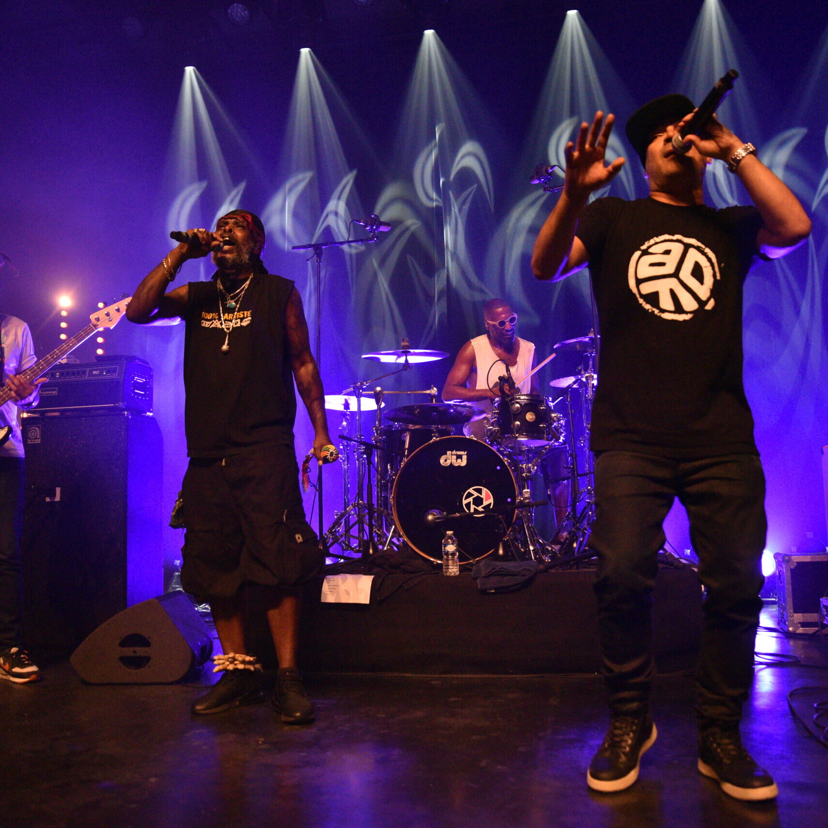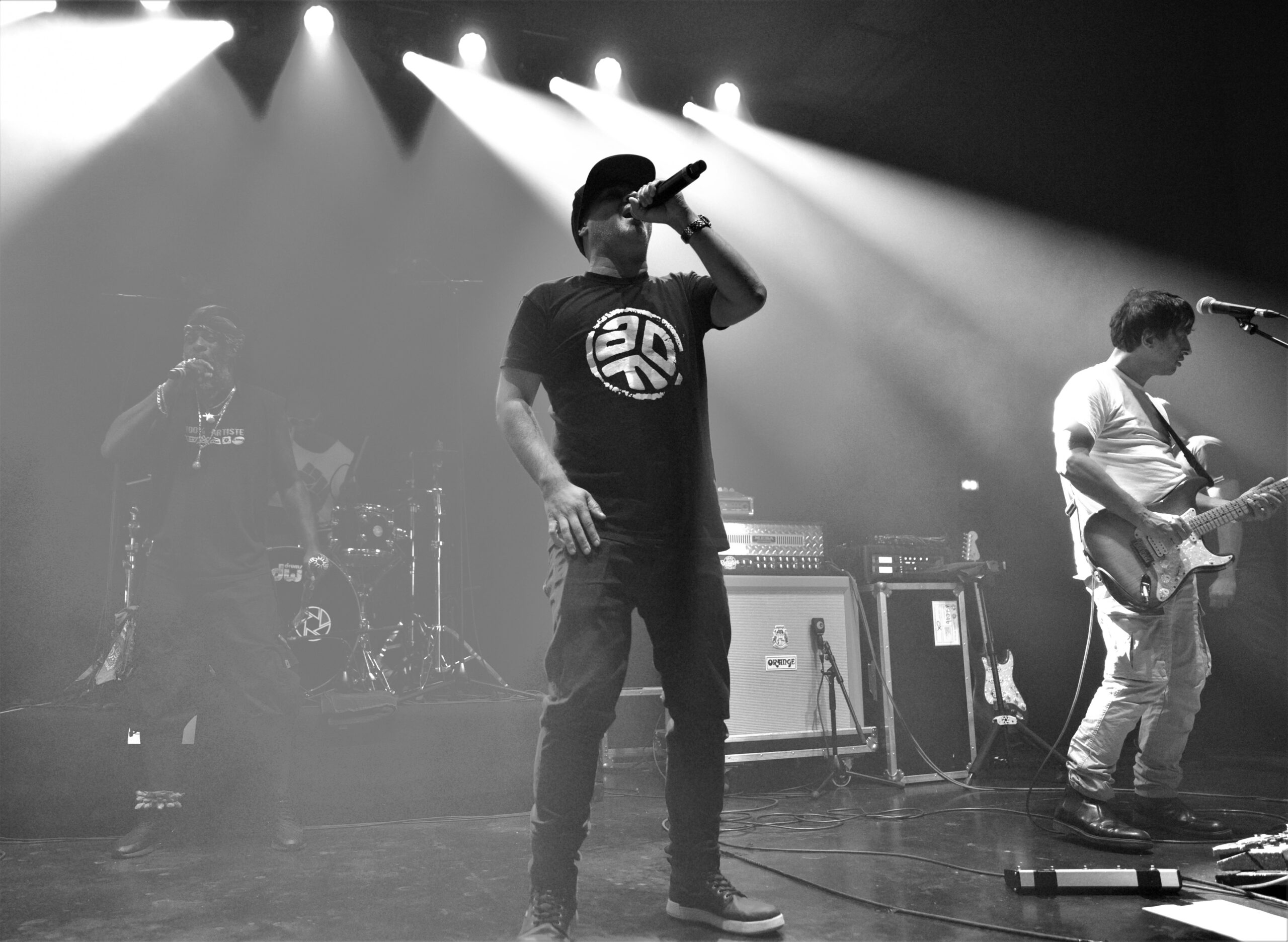 Il faudra attendre 22 h pour que le groupe anglais ASIAN DUB FOUNDATION, en tournée en France pour la sortie de son 9e album ACCESS DENIED, prenne place sur la scène du Charbon. L’histoire commence dans les années 90, lorsque le groupe se forme à partir d’un atelier de musique dans l’Est de Londres dans l’institution Community Music. Reconnu comme l’un des meilleurs groupes live, ADF est immédiatement reconnaissable par sa musique, habile mélange entre plusieurs influences qui a construit l’identité du groupe. Ce son unique, puisé dans leurs racines sud-asiatiques et sur fond de rap militant, a permis au groupe de traverser les générations et de garder intact son pouvoir d’attraction depuis 30 ans d’existence. Comme aux premiers jours, la fusion opère, l’effet est immédiat, les compositions énergétiques font vibrer le public.