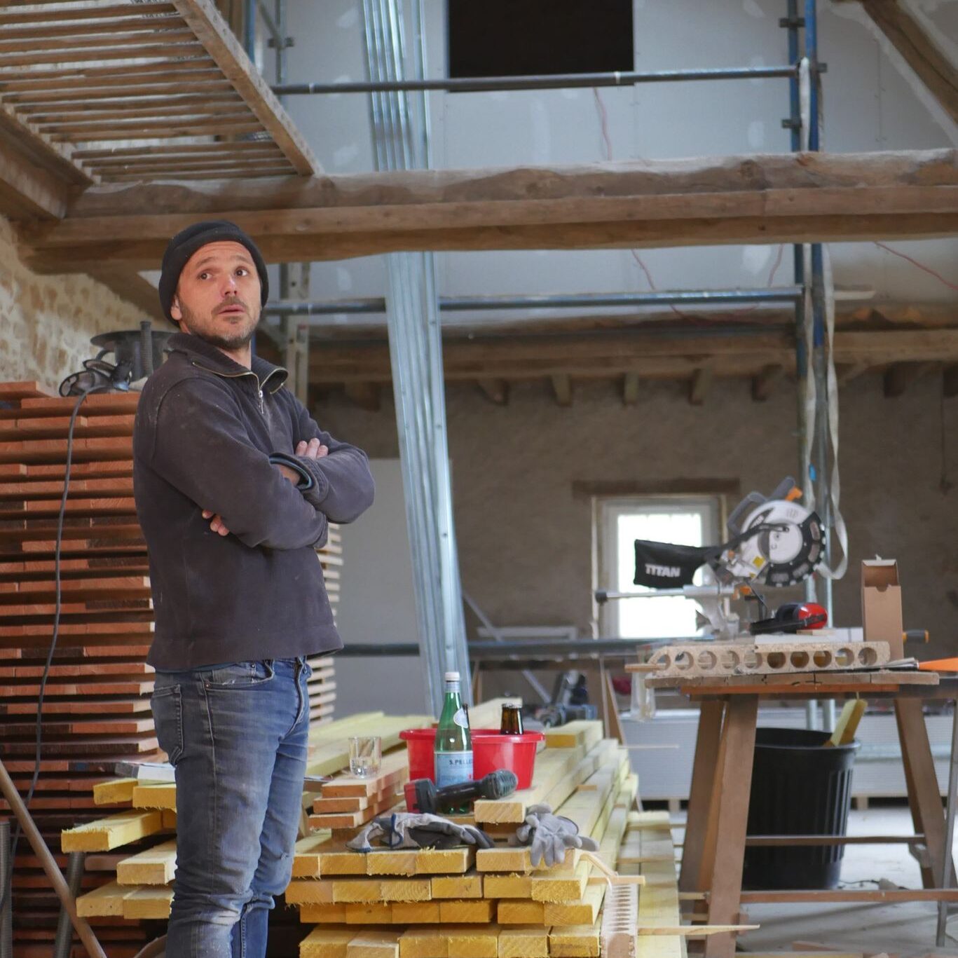 « Ma grand-mère paternelle vivait ici. C’est une maison de famille à laquelle je suis hyper attaché », expliquait le percussionniste de jazz quelques jours plus tôt, dans la dernière ligne droite d’un chantier qui a duré deux ans et demi : « C’est le Covid qui a lancé ce projet, auquel je pensais quand j’étais étudiant en musique. » Le jeune quadra, qui vit en famille à Nevers et court le monde avec ses formations jazz (voir encadré) rafraîchit d’abord la maison de bourg, restée dans son jus pendant des décennies, avant de se pencher sur l’écurie. « J’avais un studio parfait à Nevers, chez moi, mais il a été endommagé par des remontées capillaires. Je n’avais plus d’espace de travail. Je suis venu travailler dans cette maison, à Arthel, avec le groupe Farmers, et mon entourage me disait que je revenais plus serein. »