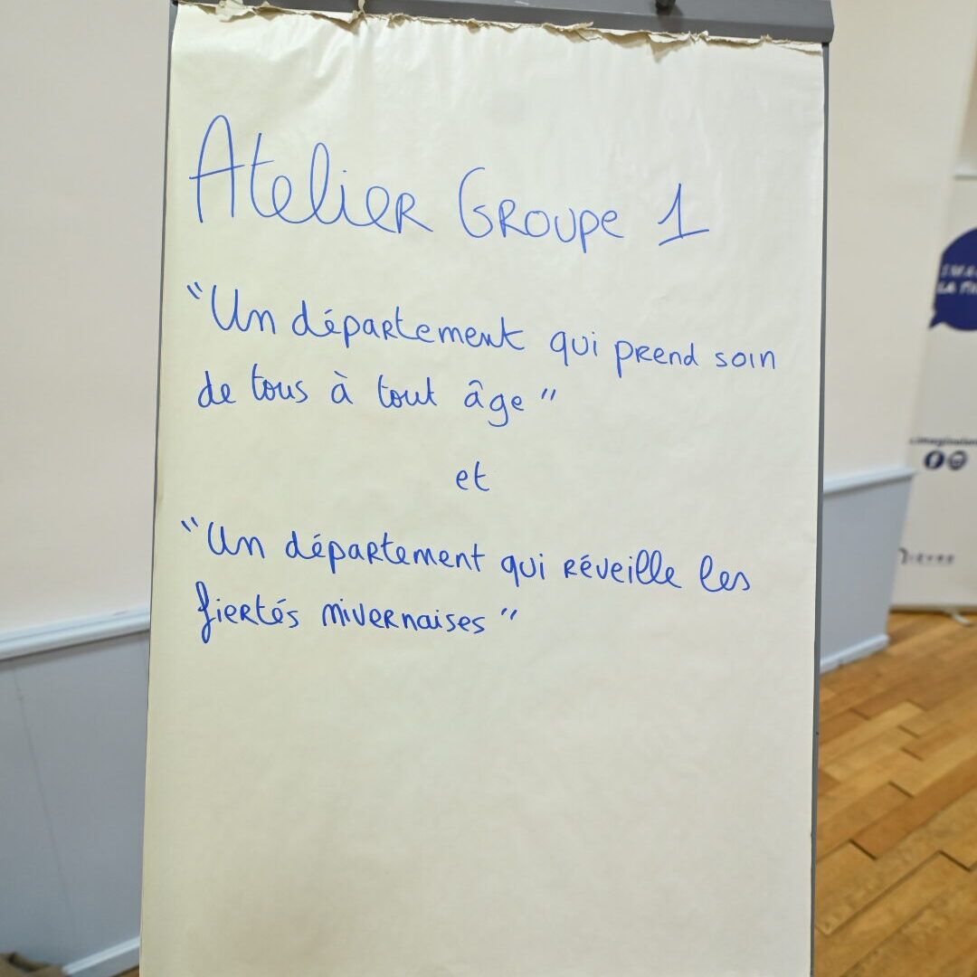 Alors qu’un premier atelier était consacré aux deux ambitions « un département qui prend soin de tous à tout âge » et « un département qui réveille les fiertés nivernaises », le second groupe débattait des thèmes « le département met la jeunesse au cœur de son renouveau » et « un département qui pilote les changements écologiques ». Le dialogue s’est naturellement amorcé entre les citoyens, les élus et les agents de la direction générale des services.