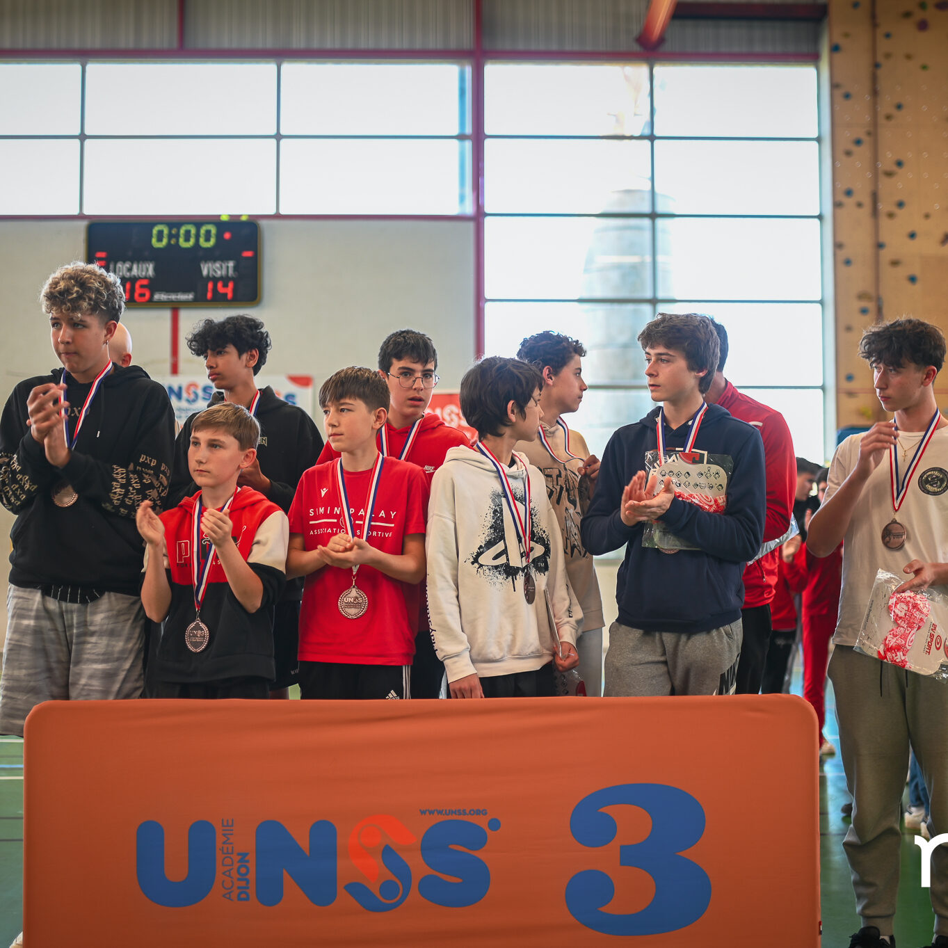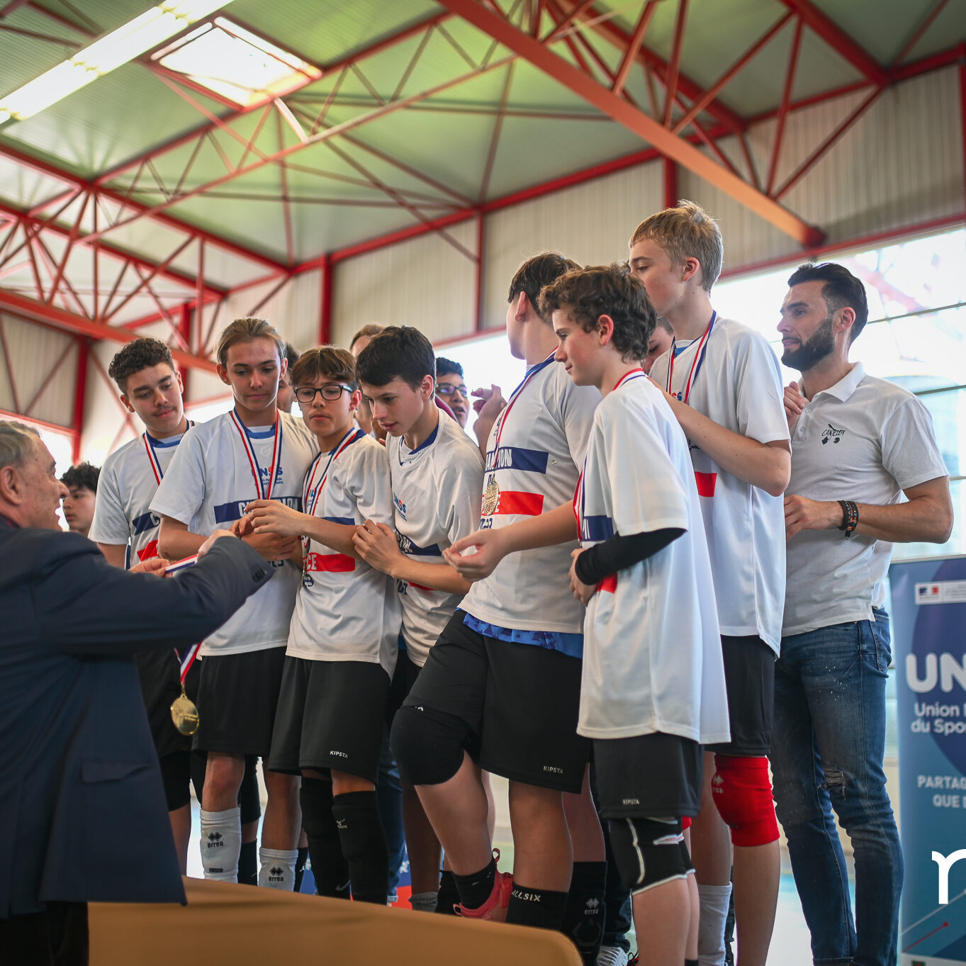 Le gymnase de la cité scolaire Maurice-Genevoix résonne comme un mini-Zénith dans le calme vendredi après-midi du faubourg d’Allier, à Decize. « Gounod ! Gounod » contre « Paris!Paris ». Le match des tribunes fait écho à celui qui se joue sur le terrain, où de grands ados montés en graine se disputent le Graal, le titre de champion de France UNSS (Union nationale du sport scolaire) de volley-ball, catégorie minimes garçons Excellence. Services smashés, réceptions plongées, passes ciselées : la qualité du jeu est au diapason de l’enjeu. De haute lutte, en trois sets, le collège Charles-Gounod inscrit son nom et celui de Canteleu, commune de l’agglomération de Rouen (Seine-Maritime) au palmarès national, laissant les regrets et la deuxième place du podium aux Parisiens du collège Moulin-des-Prés.