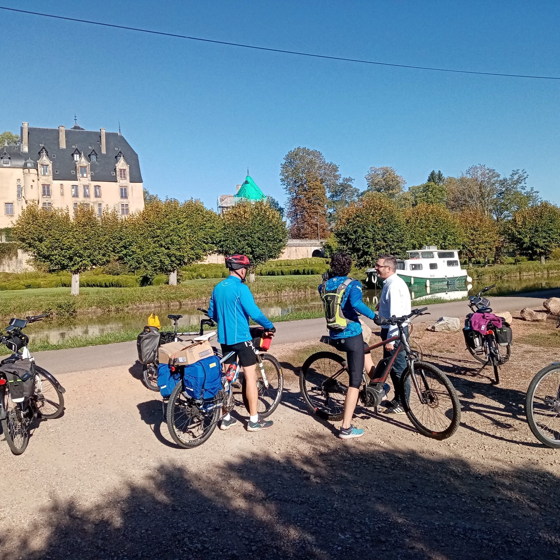 Chaque étape quotidienne, d’une cinquantaine de kilomètres « avalés » au rythme raisonnable de 15 km/h, a laissé aux auditeurs (sept à neuf selon les étapes) suffisamment de temps pour rencontrer les acteurs de la vie de la Véloroute : personnes en charge de l’entretien, hébergeurs, loueurs, commerçants, etc. À mi-parcours, le groupe a bifurqué jusqu’au Centre d’entretien routier du Département, à Corbigny, pour échanger avec Alain Herteloup, vice-président en charge des infrastructures et des déplacements, Jean-Louis Lebeau, président du Syndicat mixte d’équipement du canal du Nivernais de la Nièvre, et deux professionnelles du secteur, Patricia Robert, gérante du restaurant La Coulée douce voisin du canal à Marigny-sur-Yonne, et Vanice Makougan, chargée de mission tourisme à la communauté de communes Tannay-Brinon-Corbigny.