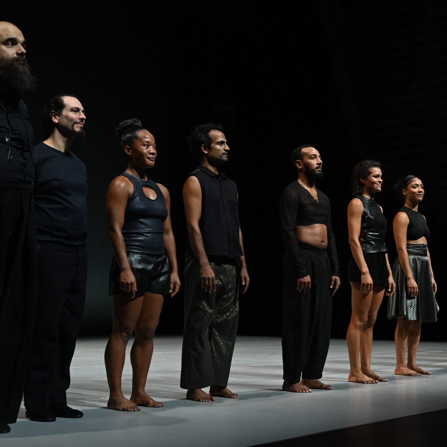 Avec cette scénographie, Héla Fattoumi et Eric Lamoureux, les deux co-directeurs du Centre chorégraphique national de Belfort (Viadanse), rendent hommage à la pensée de l’écrivain martiniquais Édouard Glissant. Un hommage jusque dans le titre Tout-Moun qui signifie en créole « chacun et tout le monde ». Une pensée qui forge le spectacle : dix danseurs, tous issus de nationalités diverses et de cultures chorégraphiques différentes, forment une dissemblance chorégraphiée qui impressionne et interroge.
