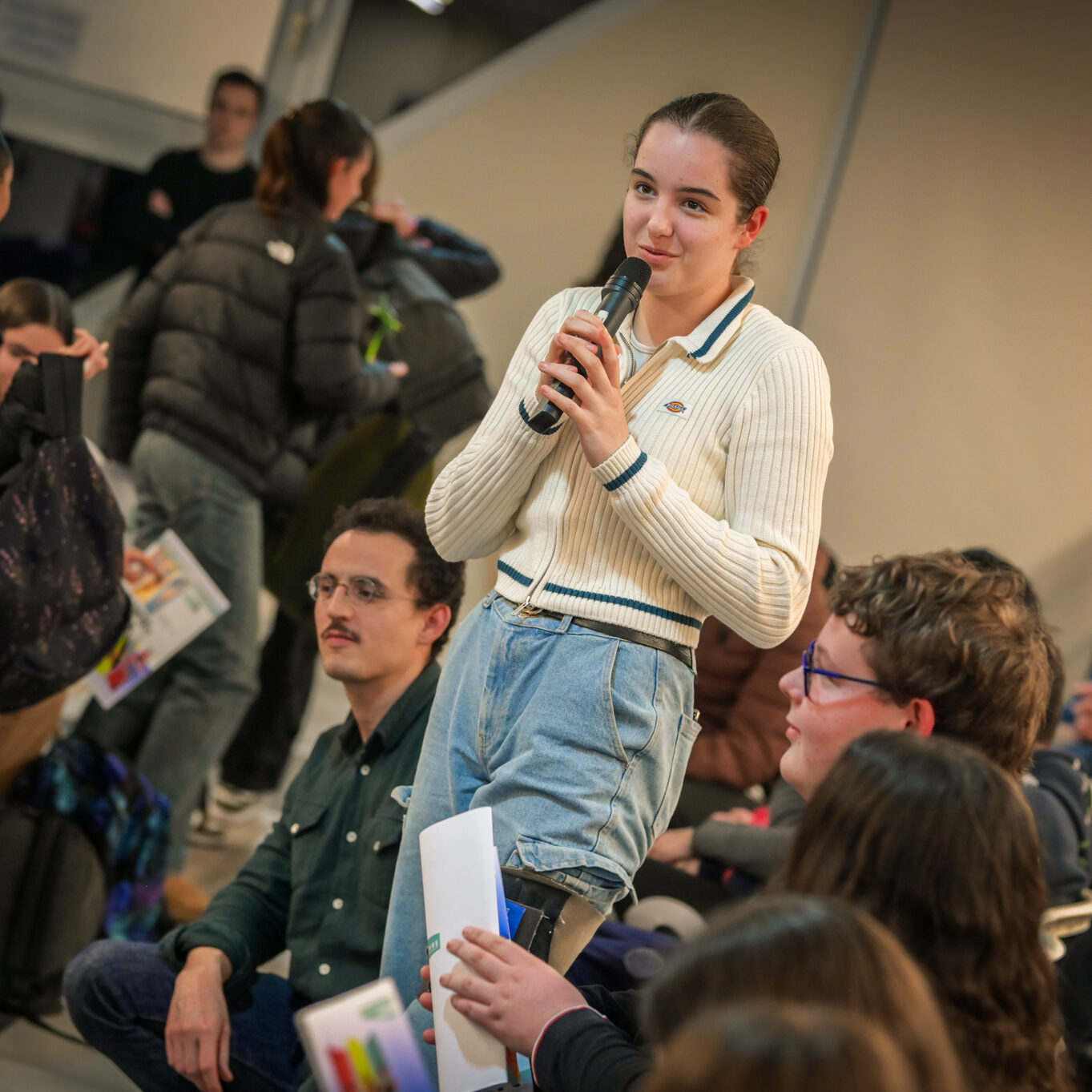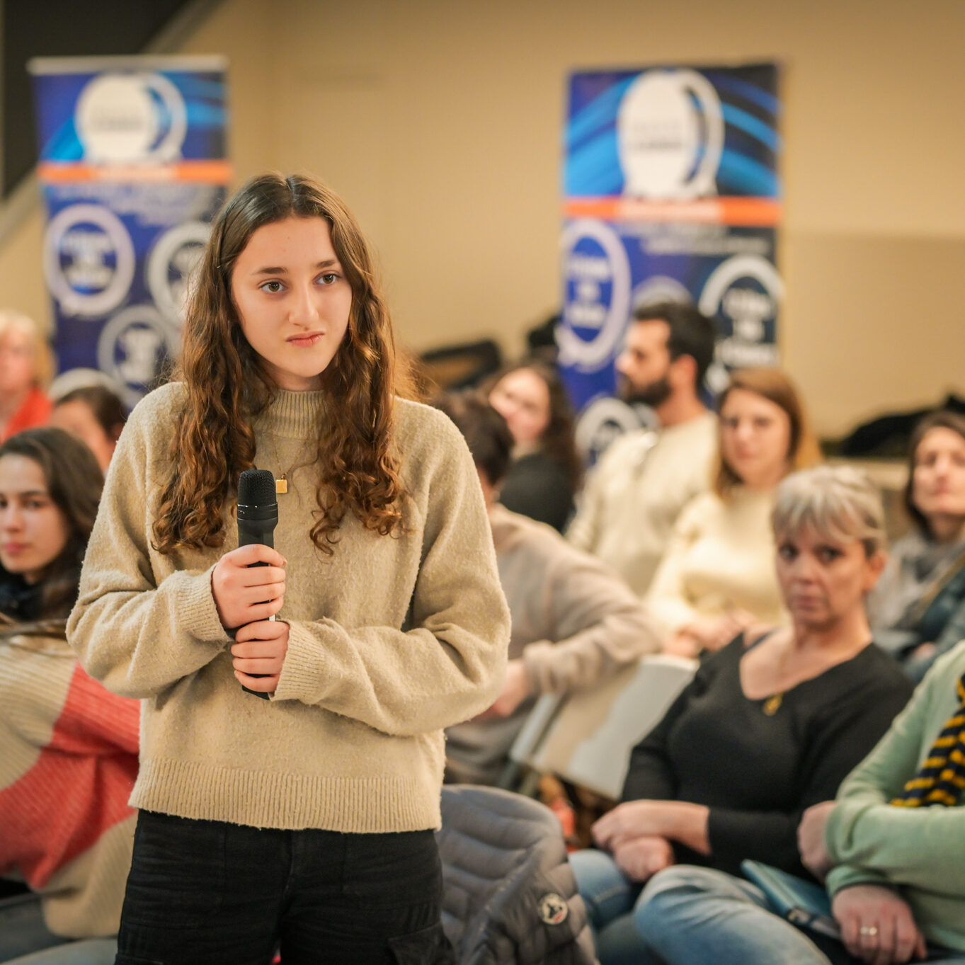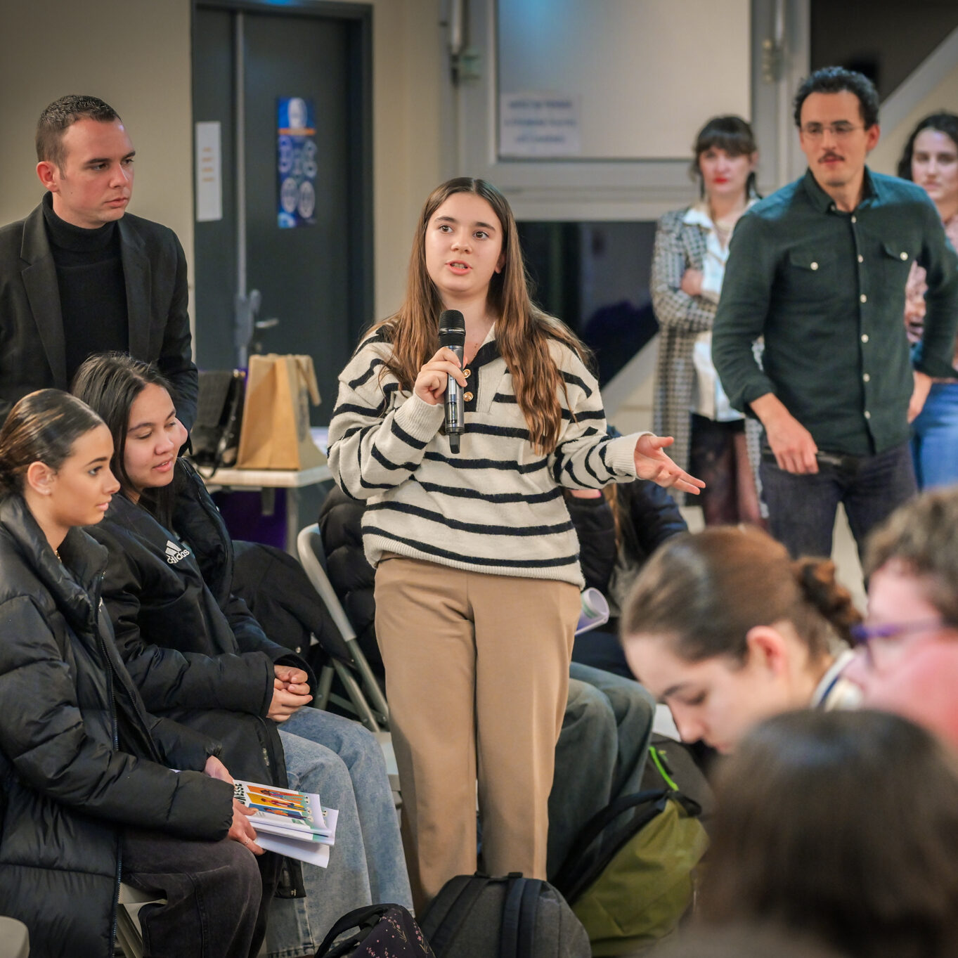 Ce soir, j’entends et je vois beaucoup d’ambitions chez les jeunes, et c’est très agréable. Mais dans mon métier, je vois aussi des jeunes qui ont moins envie, qui ont des craintes, et ce sont eux qu’il faut aller chercher, c’est à eux qu’il faut proposer des ouvertures. Les jeunes que je côtoie au lycée ont souvent l’impression qu’ici tout ne leur est pas ouvert. Je ne m’inquiète pas pour ceux qui sont là ce soir ; s’ils sont venus, c’est parce qu’ils ont envie de s’investir.