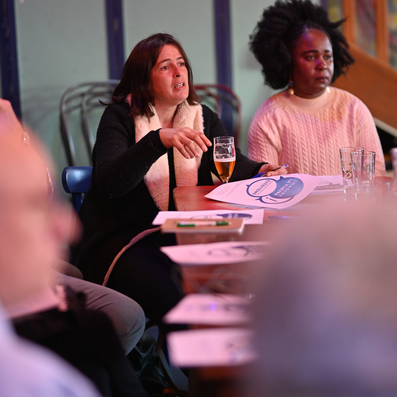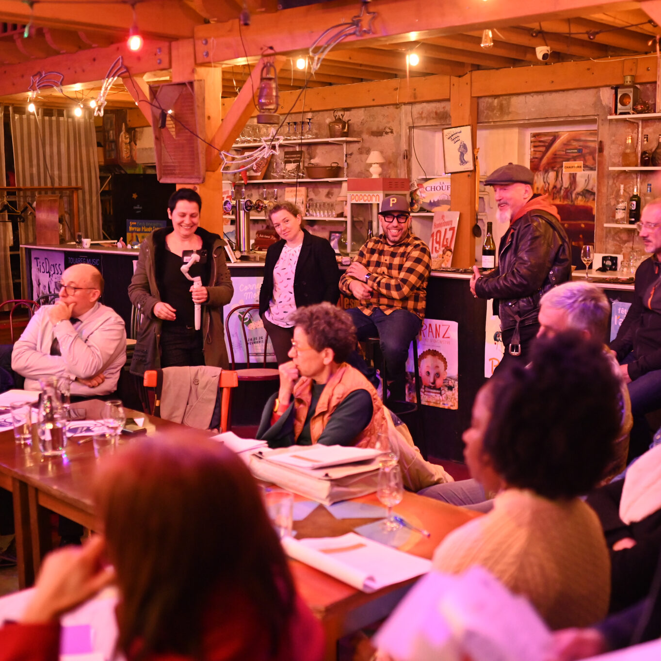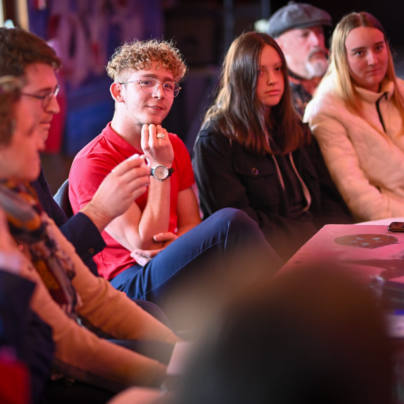 La nouvelle salle de concerts, construite à l’arrière du long bâtiment par les anciens propriétaires, a prêté ses flancs chauds et son plafond égayé de guirlandes d’ampoules multicolores à l’exercice rigoureux de l’évaluation des engagements pris par le Conseil départemental en faveur de la jeunesse. En préambule, Nicolas Petiot a brossé le portrait du Cornemuse et sa ligne directrice depuis la reprise par le trio d’amis, en 2019 : « L’ensemble du projet a été tourné sur la jeunesse, l’engagement et la formation. On accueille des services civiques, des stagiaires, des apprentis. On a également élaboré un programme, les Fondamentaux, où on appelle les gens à partager leurs savoirs, par exemple sur la cuisine, le cinéma, la forêt. Le but, c’est de permettre aux jeunes qui ne fréquentent pas Le Cornemuse de se réapproprier le lieu. »