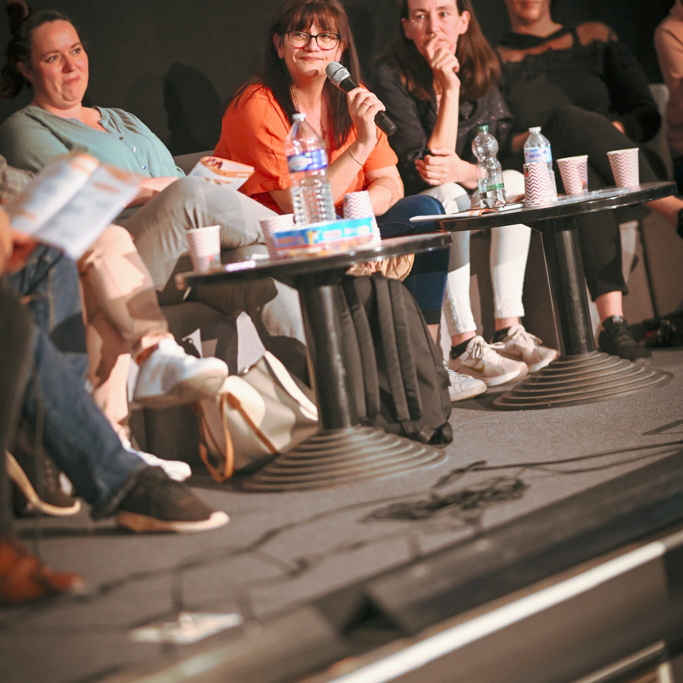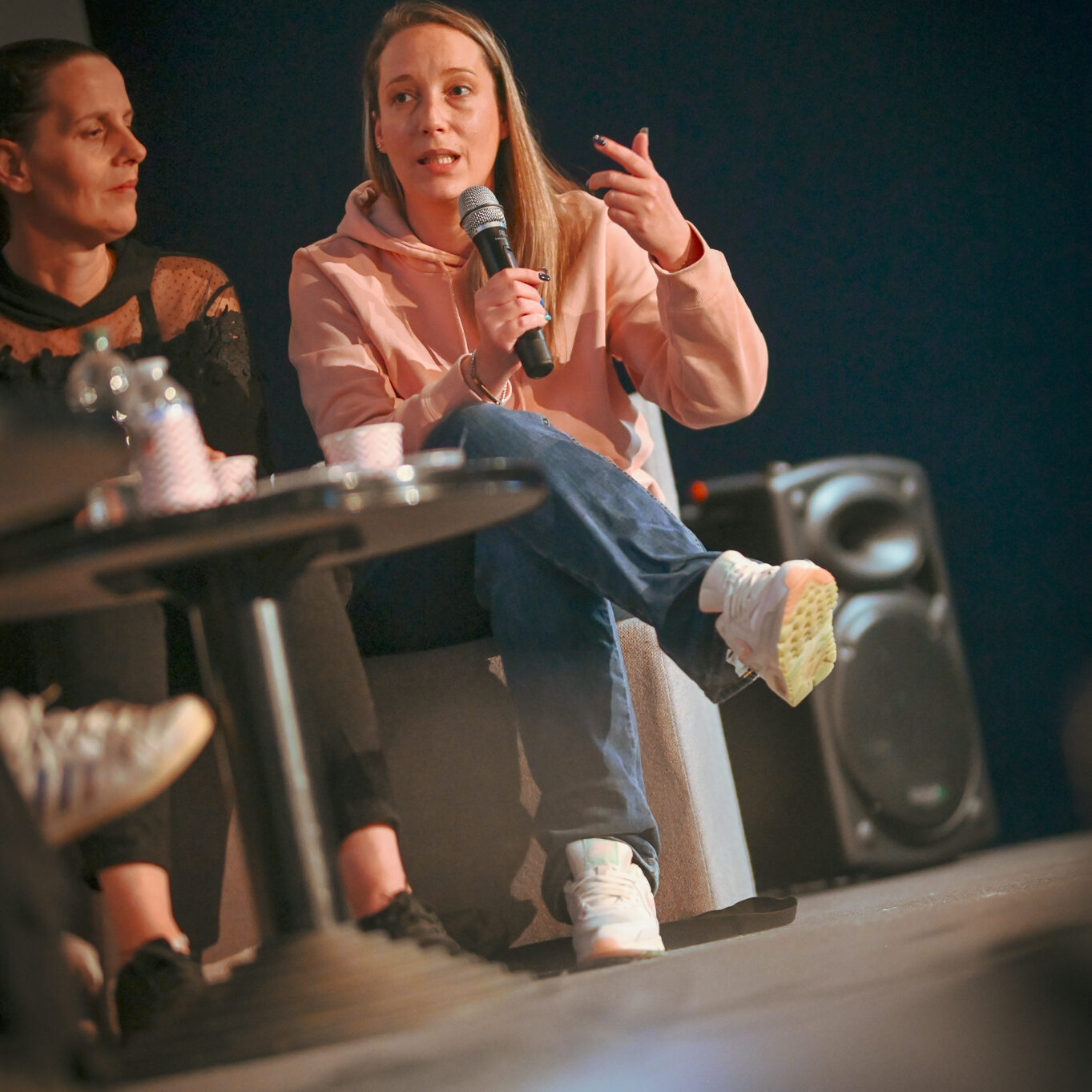 La boîte de Haribo ne survit pas à la séance. Aline, Leslie, Harmony, Xavière et leurs amies du groupe « Maman sauve-toi » piochent dans les friandises posées sur la table, pour se rassurer et se donner du cœur au témoignage, à la mise à nu de leurs tourments, passés ou présents, de mères. Elles sont sept, serrées comme des oiseaux sur une branche, assises sur la scène de la grande salle de l’Eden Cinéma, en compagnie de l’éducateur Arthur Damerval, qui anime, questionne, plaisante quand l’émotion pèse.