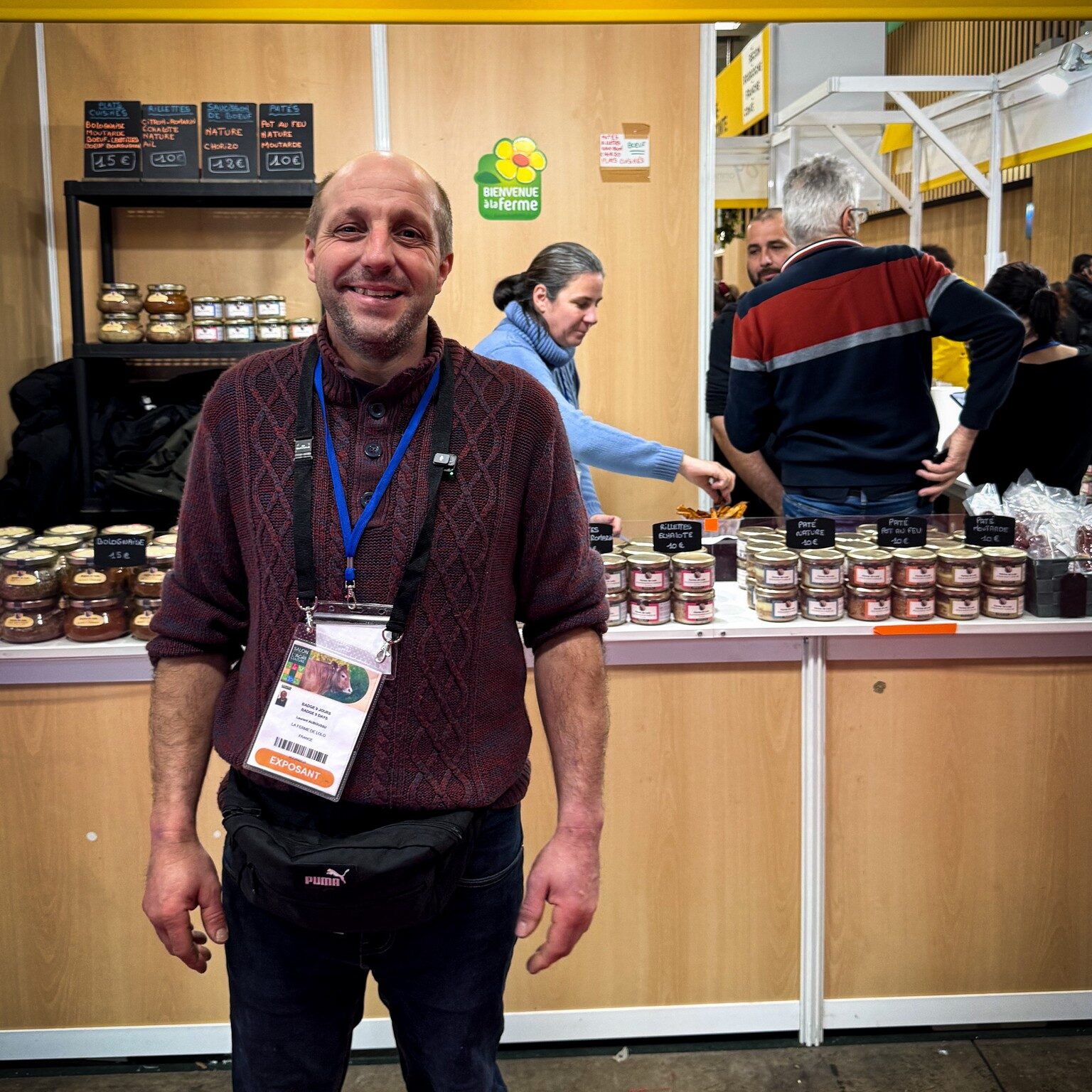 « On vous adore », rougit une maman accompagnée de sa fille. « On peut faire une photo ? On va aussi vous acheter des choses. » Avec un grand sourire, Laurent Auboussu fait le tour de son stand pour le selfie. D’autres curieux affluent devant La Ferme de Lolo, installé en évidence à l’entrée de l’espace de la Région Bourgogne-Franche-Comté. L’ancien participant de L’Amour est dans le pré (saison 2019) surfe sur sa notoriété, toujours solide, à en juger les demandes de photos qui s’enchaînent. Éleveur de charolais à Saint-Hilaire-en-Morvan, « Lolo » s’est lancé en 2023 dans la fabrication de plats cuisinés – bœuf bourguignon, bolognaise, rillettes, saucissons : « Cela représente 18 vaches par an, 5 000 bocaux par mois. Je fais transformer la viande chez Nature et Régions, à Luzy. Je fais de la vente directe, j’ai une boutique à la ferme, et un site internet ; je vends aussi dans des grandes surfaces, à Marzy et Château-Chinon, et des épiceries fines. On travaille en famille, avec mon père, mon beau-père, ma compagne Céline, mon fils qui est au lycée agricole. Je pensais faire de la diversification, et le projet s’est accéléré grâce à L’Amour est dans le pré. »