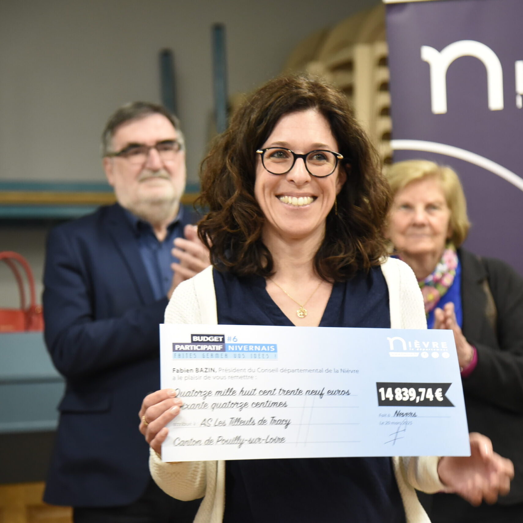 Venus, pour les plus lointains, de Montsauche-Les Settons, Corbigny ou Millay, les lauréats du 6e Budget participatif nivernais étaient conviés à Livry, à la lisière ouest de la Nièvre et de l’Allier, entre Saint-Pierre-le-Moûtier et Le Veurdre, pour recevoir leur chèque, en version grand format symbolique, des mains de Blandine Delaporte, vice-pérsidente en charge du fonds d’innovation et d’investissement territorial, des conseillers départementaux Maryse Augendre et Jean-Paul Fallet, et du maire Adrien Aufèvre.