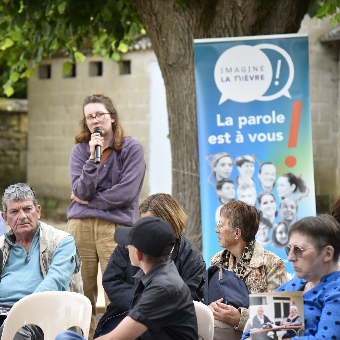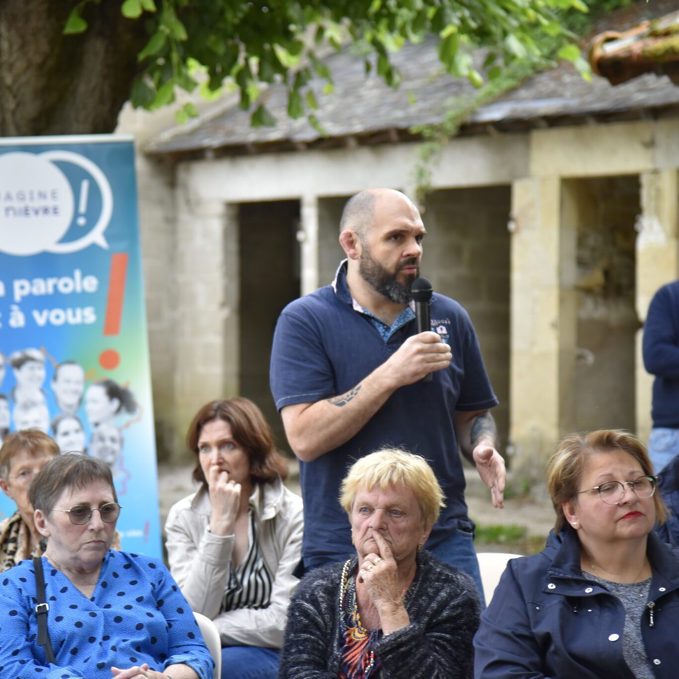 « J’ai des enfants, et j’ai été confrontée au manque de médecins dans la Nièvre », poursuit une femme. « Pour le suivi en hôpital, il a fallu aller à Clermont-Ferrand, puis à Lyon. Le train devrait être un service public, il faudrait multiplier les navettes pour se rendre facilement à Clermont ou à Dijon. Pourquoi ne pas imaginer une plateforme qui permettrait de développer le covoiturage au niveau local ? Il y a une vraie demande dans nos villages. On est beaucoup à travailler à Nevers : moi, j’ai des horaires fixes, et je suis seule dans ma voiture, je pourrais emmener des gens pour des rendez-vous professionnels ou des courses. On est dans un cadre agréable, nos enfants sont attachés à cette région. Peut-être qu’ils partiront, peut-être qu’ils reviendront, comme on l’a fait à notre époque. Mais s’ils reviennent, il faudra qu’ils aient de la sécurité sur des questions comme la santé. »