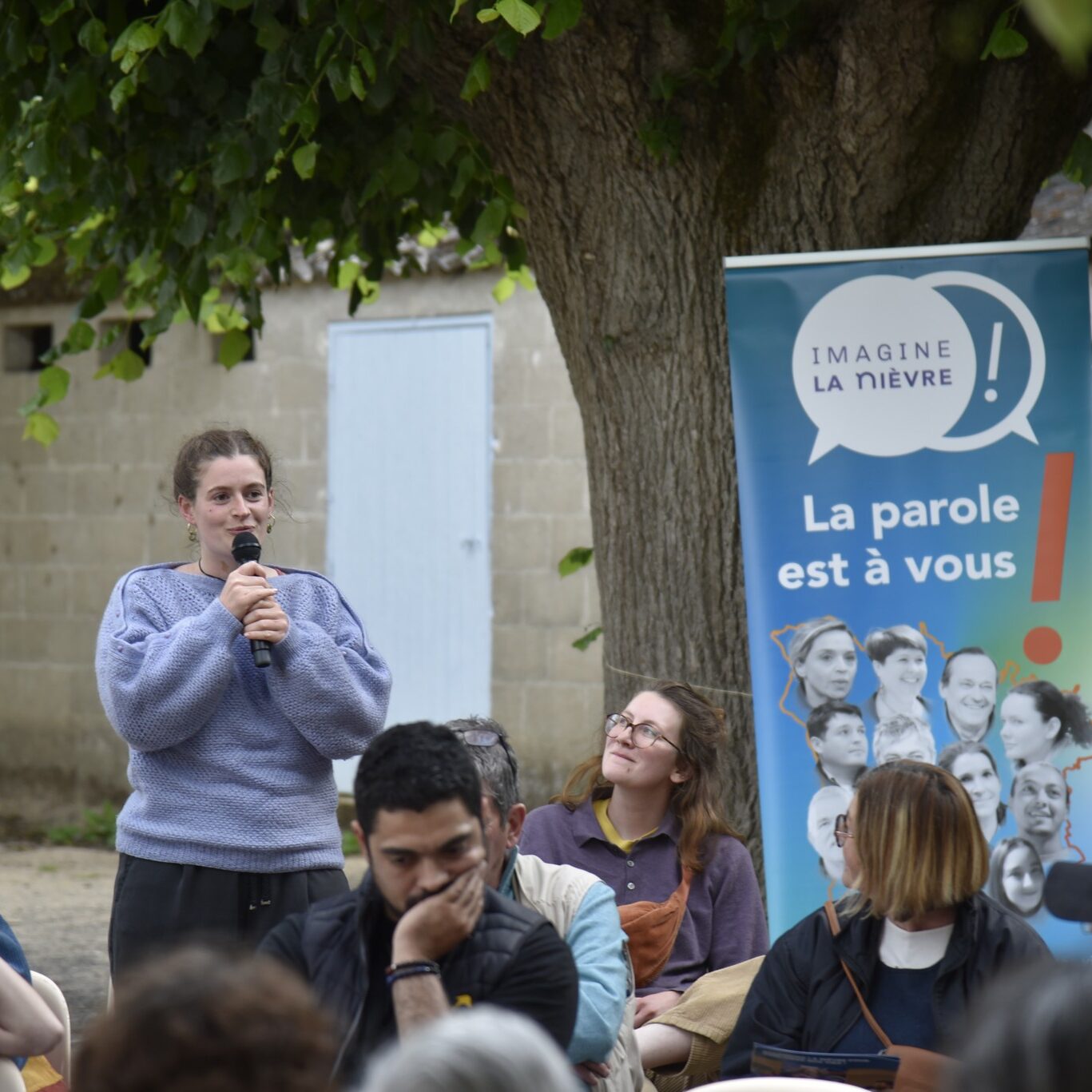 Rayonnantes elles aussi, deux jeunes filles, Marine et Camille, livrent à leur tour un premier diagnostic à chaud de leur nouveau cadre de vie. « On est dans la Nièvre depuis un mois », explique la première. « J’habitais à Paris, je suis venue vivre ici. La campagne attire ; si on est là, c’est qu’on croit à l’avenir de la Nièvre. Il faudrait peut-être créer de nouveaux espaces de communication citoyenne, comme on le fait ce soir. Il y a un problème de compréhension entre générations, c’est pareil dans le monde du travail. Il y a besoin de développer le tissu associatif, les rendez-vous citoyens. Pour trouver ce qui nous lie, au lieu de ce qui nous divise. » « On manque de lieux de sociabilité pour les jeunes, pour tout le monde », enchaîne Camille, qui a grandi dans l’Orne rurale. « C’était le rôle des bars, mais beaucoup ont fermé. Il faudrait des lieux associatifs. Si des gens voulaient s’engager pour ça, je serais prête à m’investir. »