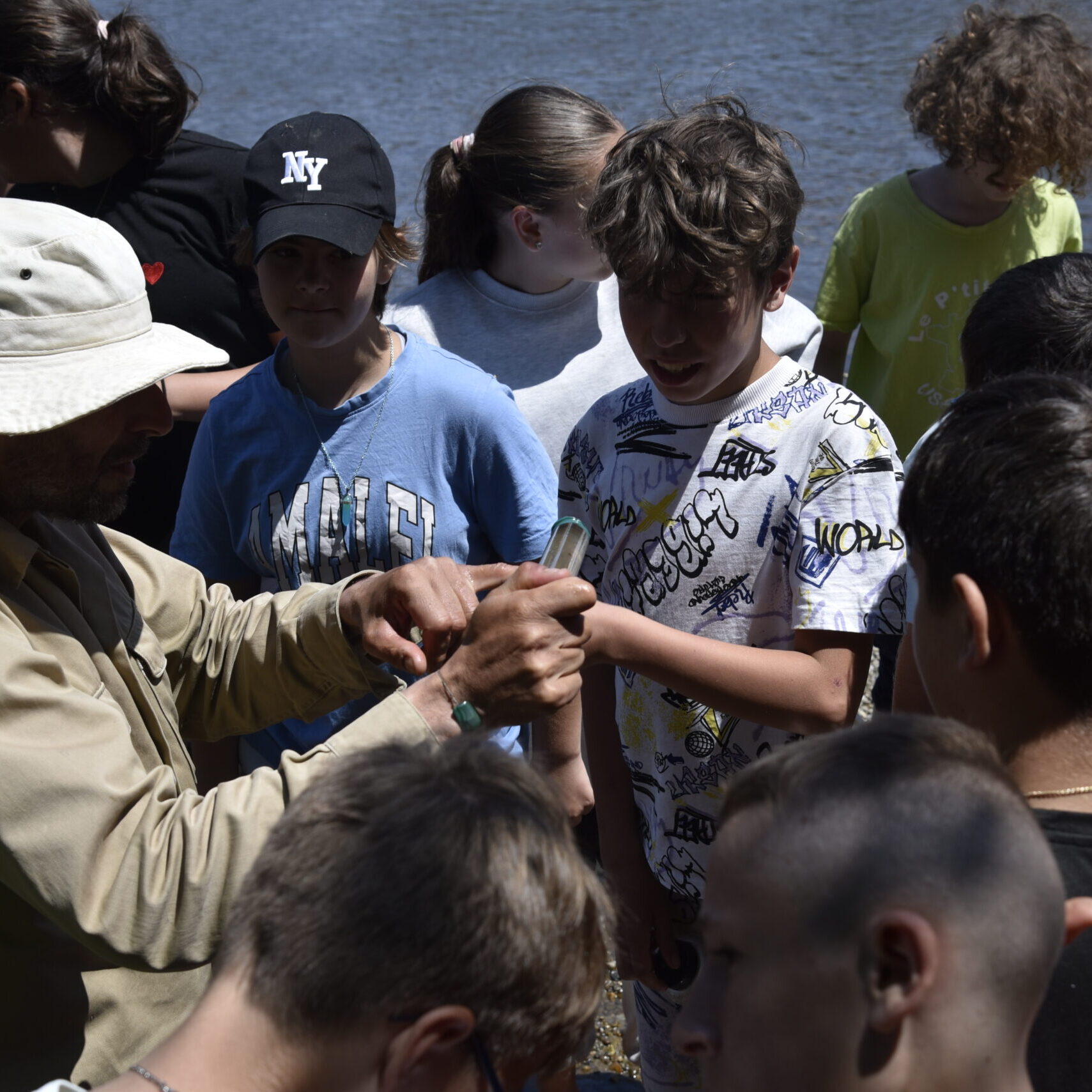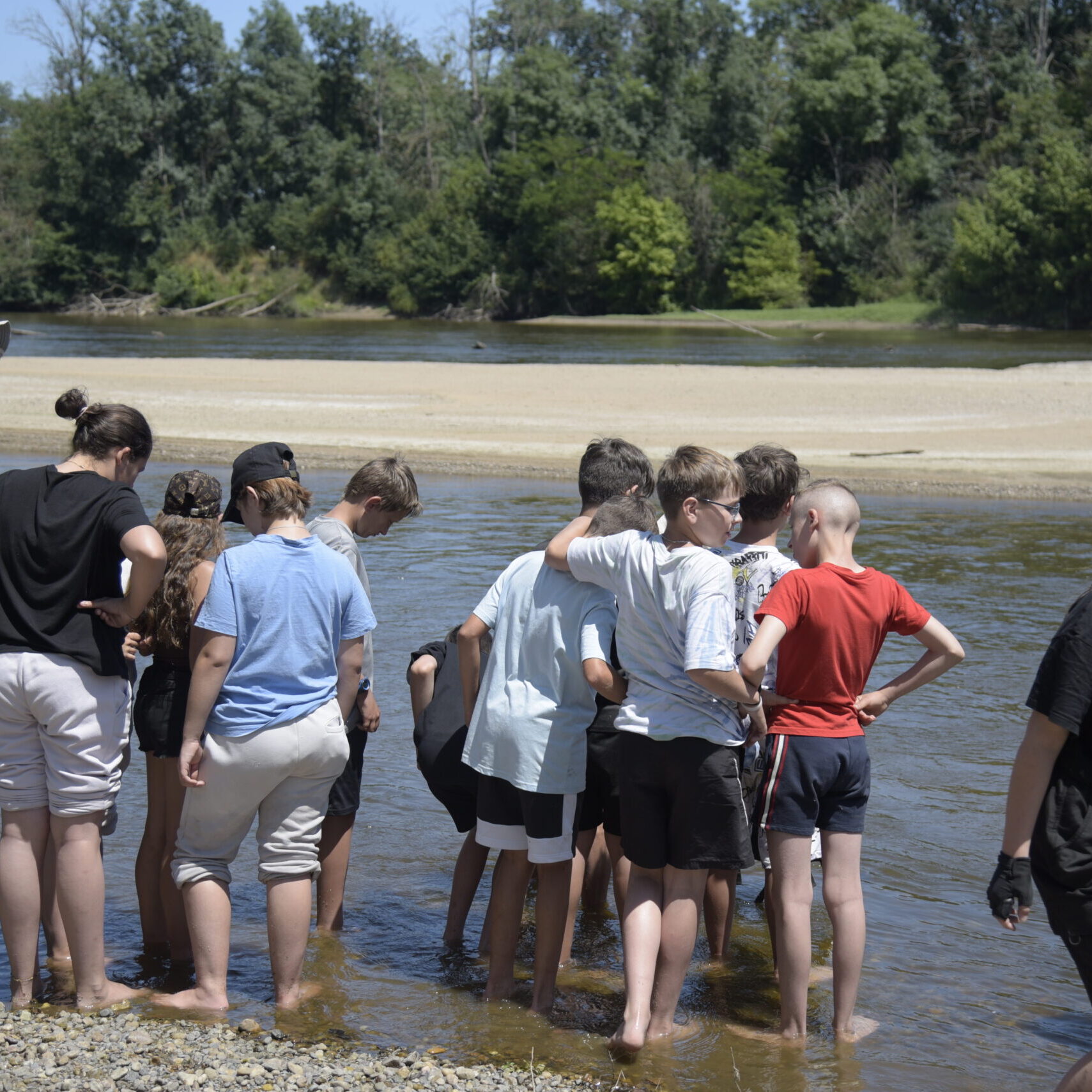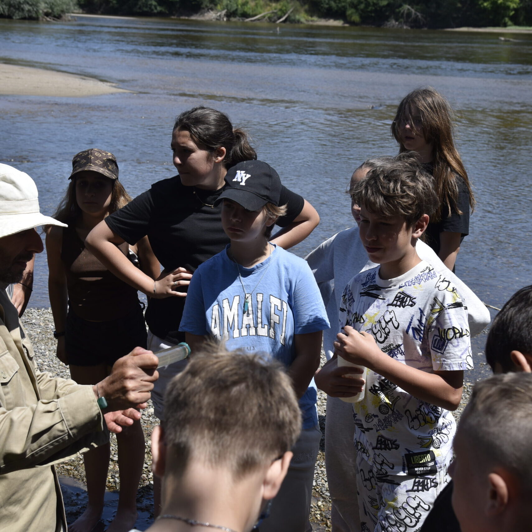 Plongeant un récipient en verre dans l’eau emprisonnée par les remous du sable, Christophe Page montre un minuscule animal : « Une crevette gammare. Elle se nourrit de débris végétaux. On l’appelle aussi la garde-fontaine. Si elle est là, c’est bon signe, ça prouve que l’eau n’est pas de mauvaise qualité. » Destination du jour, le Bec d’Allier a un parfum d’exotisme pour les élèves qui découvrent ce petit paradis de biodiversité à quelques kilomètres de leur collège. En compagnie de Grégory Chovet, professeur des écoles coordinateur ULIS, de Christophe Dumont, professeur des écoles enseignant en SEGPA, et de Christophe Page, les quinze collégiens ont rallié la confluence entre Loire et Allier à vélo (le collège dispose d’une flotte de VTT), sur la rive gauche, côté Cher, s’accordant des pauses pour observer les zones humides, le lit de la Loire, le bocage.