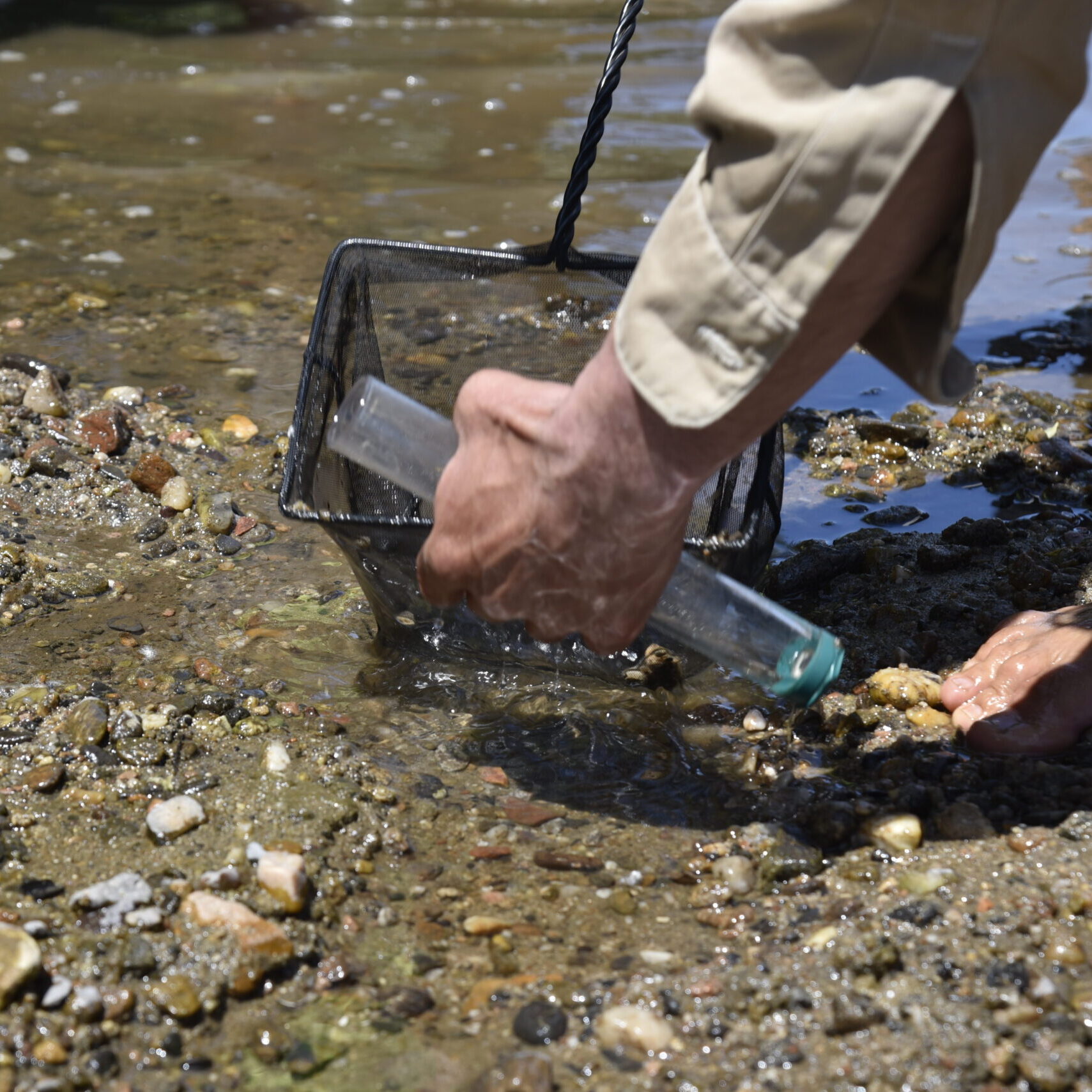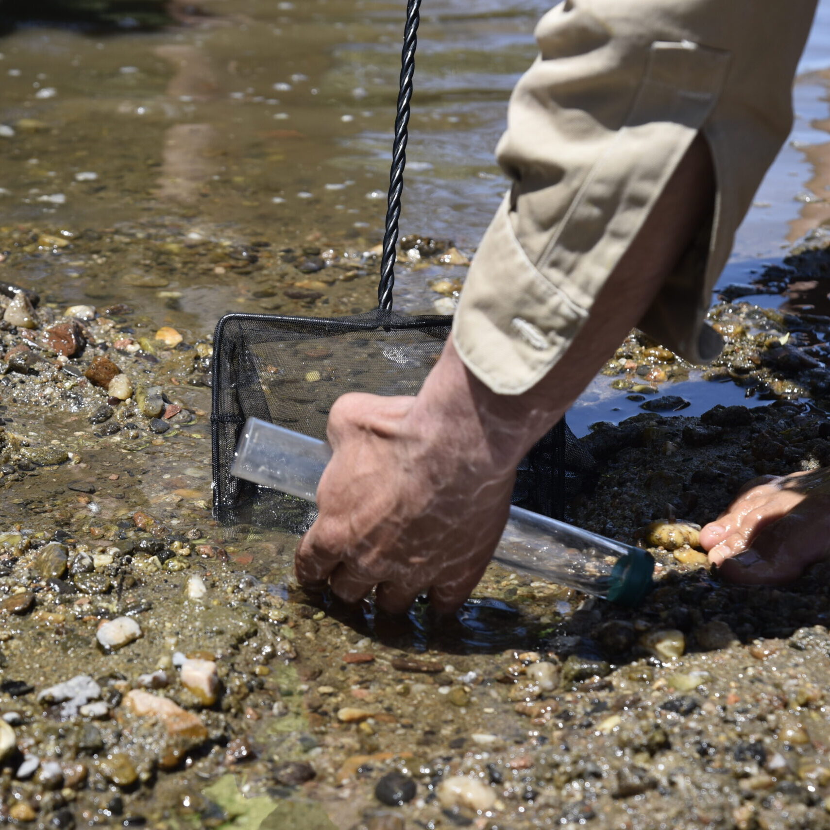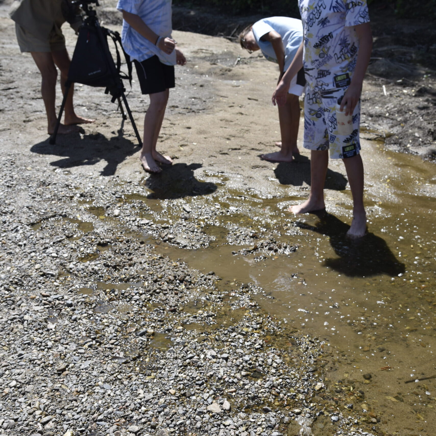 Plongeant un récipient en verre dans l’eau emprisonnée par les remous du sable, Christophe Page montre un minuscule animal : « Une crevette gammare. Elle se nourrit de débris végétaux. On l’appelle aussi la garde-fontaine. Si elle est là, c’est bon signe, ça prouve que l’eau n’est pas de mauvaise qualité. » Destination du jour, le Bec d’Allier a un parfum d’exotisme pour les élèves qui découvrent ce petit paradis de biodiversité à quelques kilomètres de leur collège. En compagnie de Grégory Chovet, professeur des écoles coordinateur ULIS, de Christophe Dumont, professeur des écoles enseignant en SEGPA, et de Christophe Page, les quinze collégiens ont rallié la confluence entre Loire et Allier à vélo (le collège dispose d’une flotte de VTT), sur la rive gauche, côté Cher, s’accordant des pauses pour observer les zones humides, le lit de la Loire, le bocage.