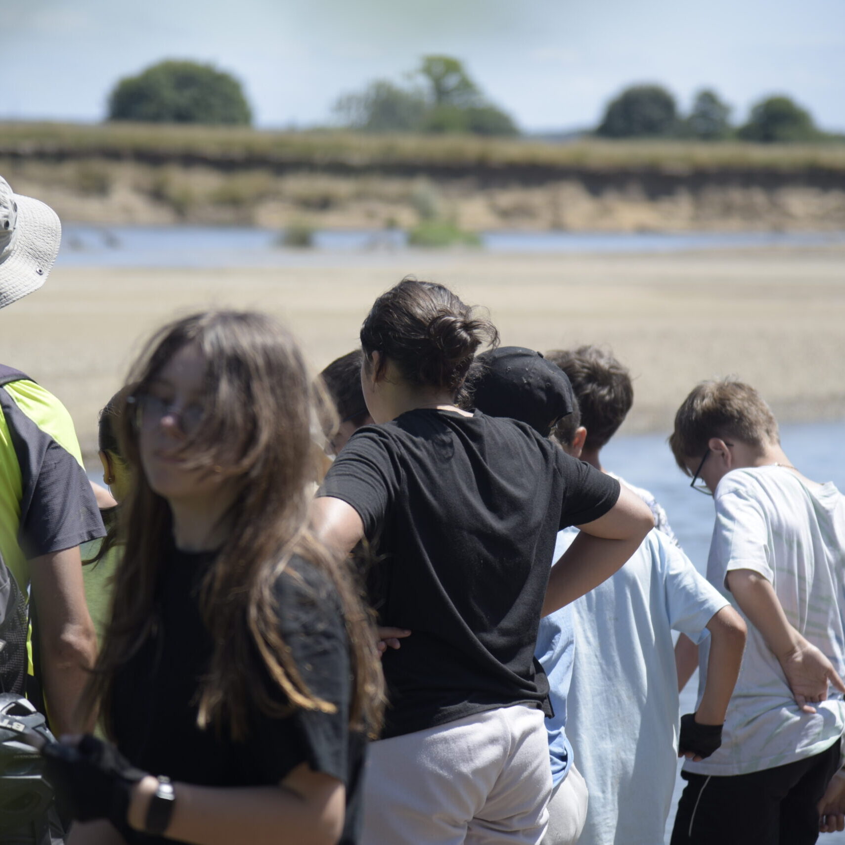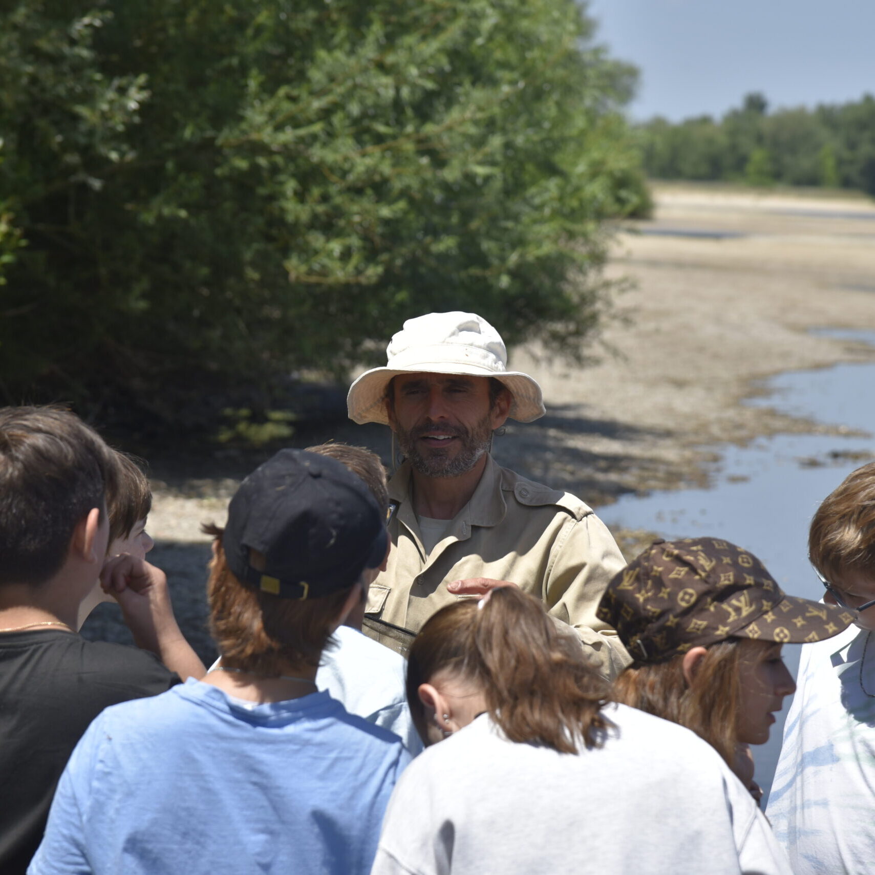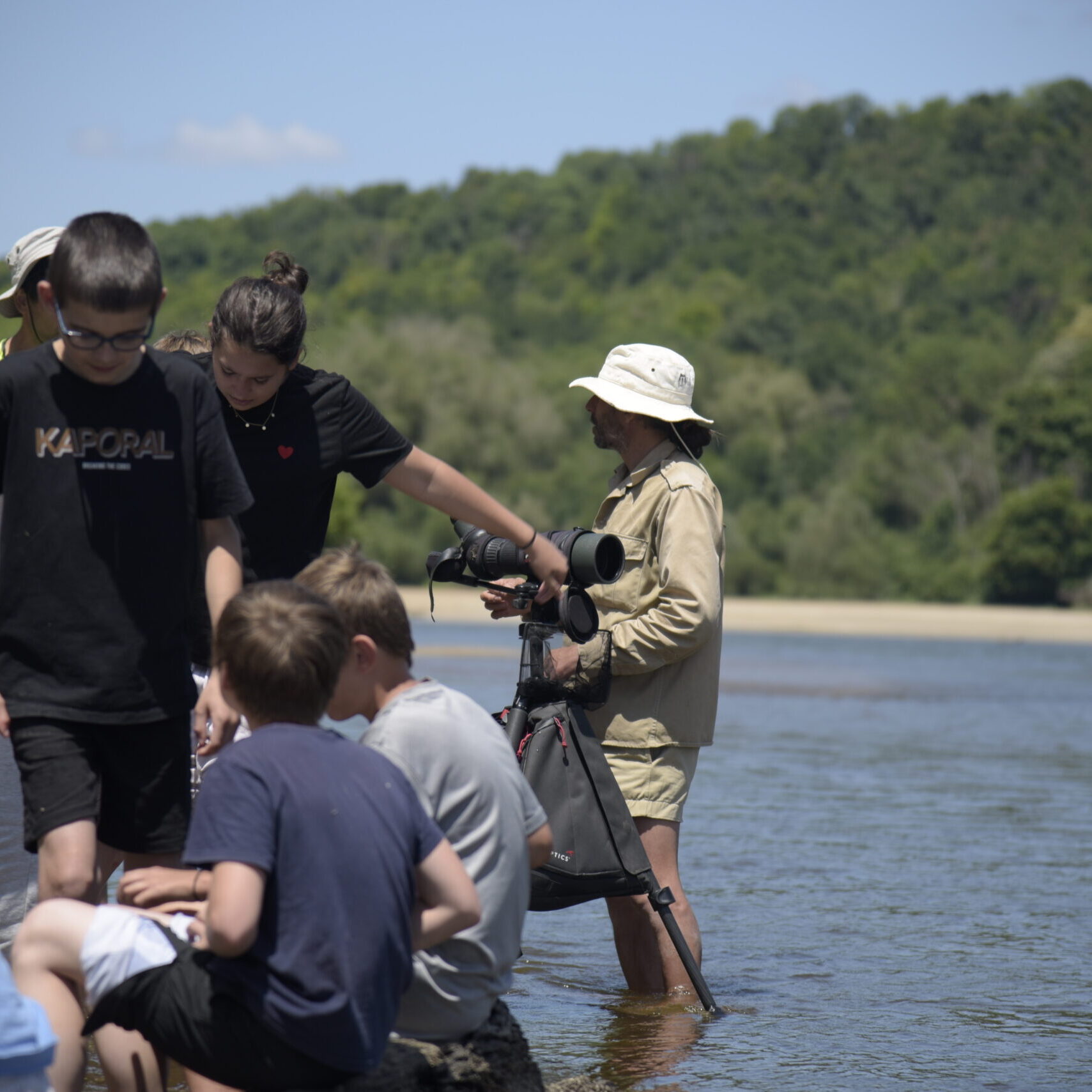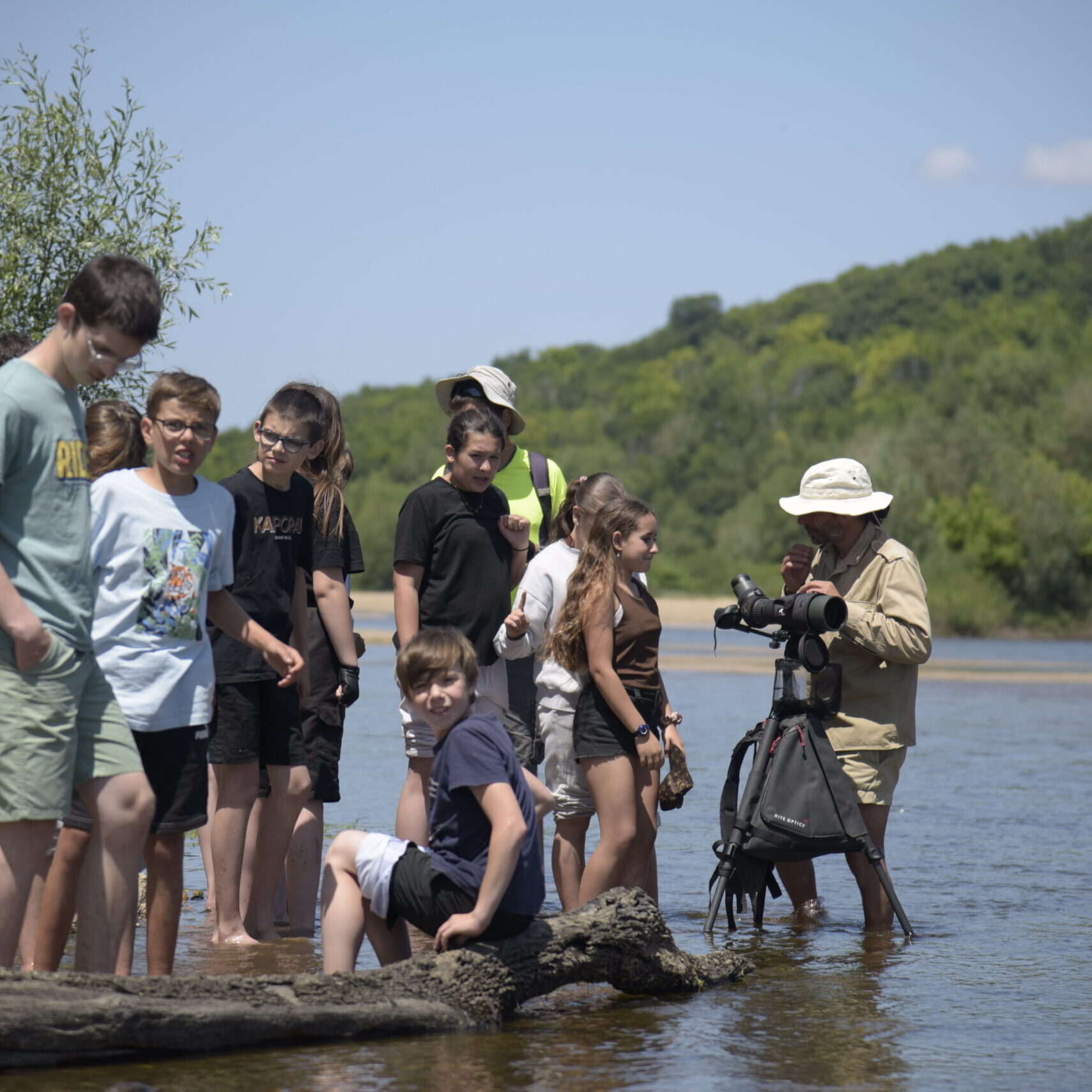 Sur la rive opposée, le guêpier d’Europe n’a pas échappé à l’œil de Christophe Page. « Approchez-vous et regardez », souffle le guide naturaliste aux collégiens qui l’entourent. Dans la longue-vue, la silhouette ronde et multicolore posée sur une branche se détache dans l’azur du ciel. Hirondelle de rivage, gravelot, héron, la faune abritée dans la marqueterie de bancs de sable, de forêt alluviale, de hautes herbes et d’eau révèle quelques secrets aux élèves d’ULIS et de 6e SEGPA (2) du collège Paul-Langevin (Fourchambault).