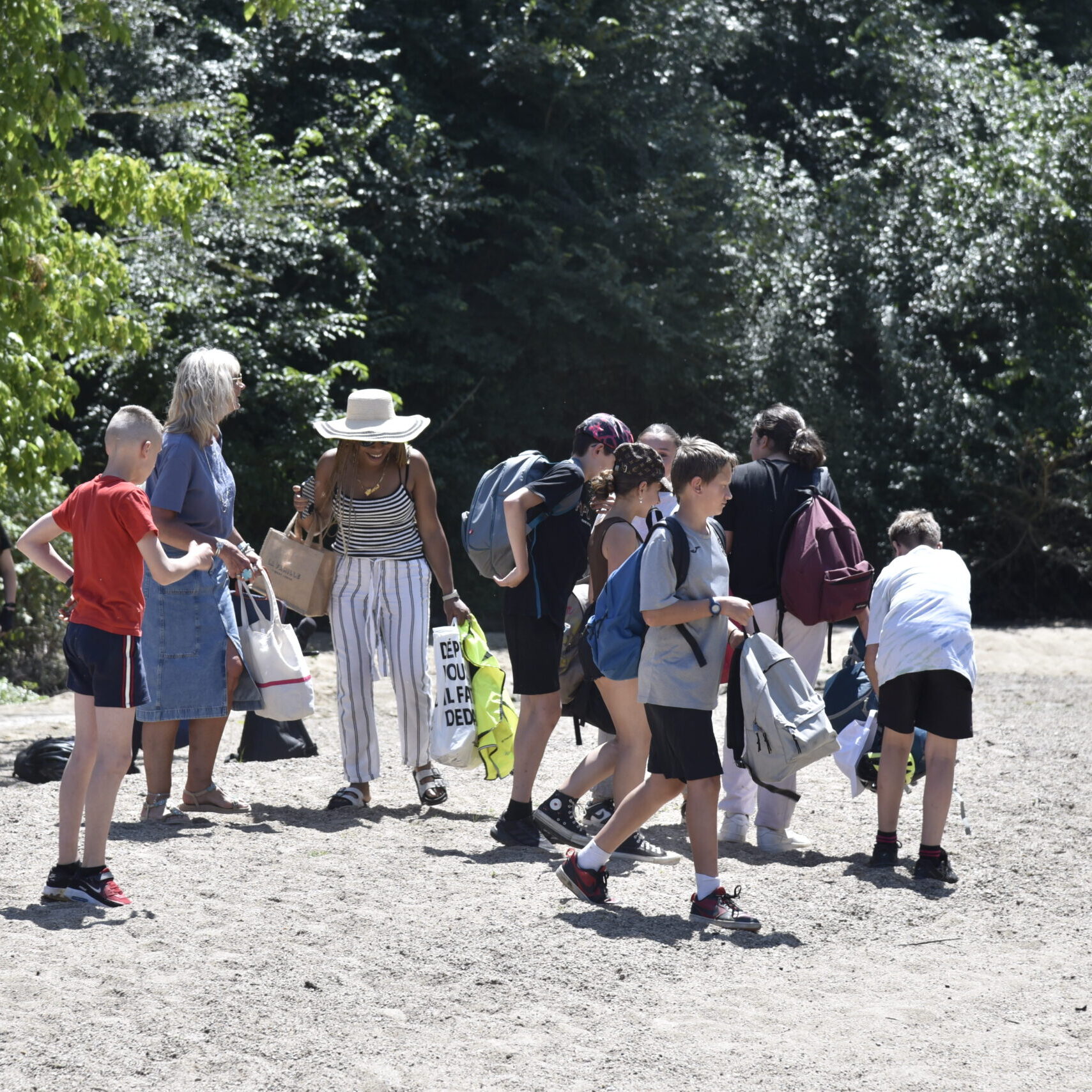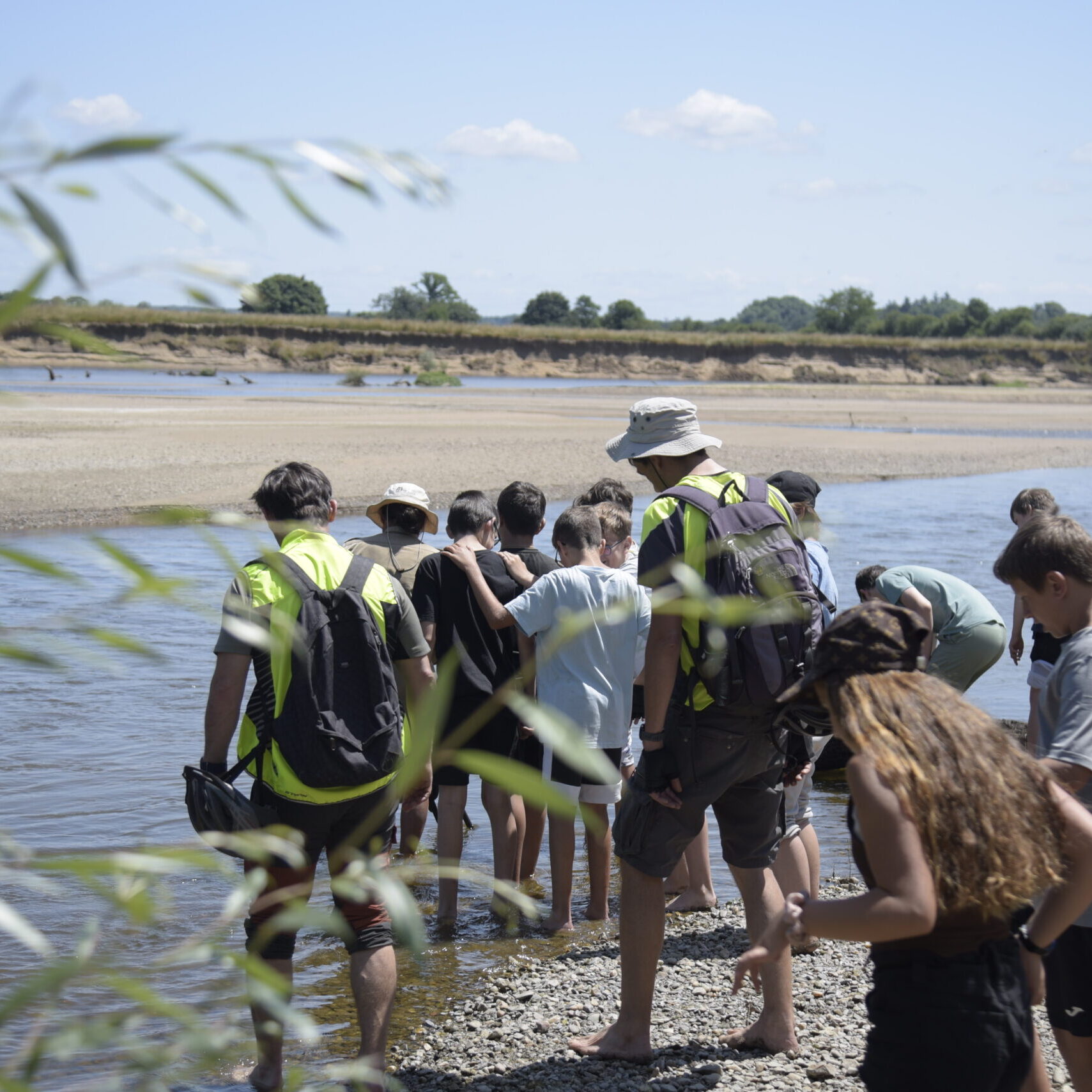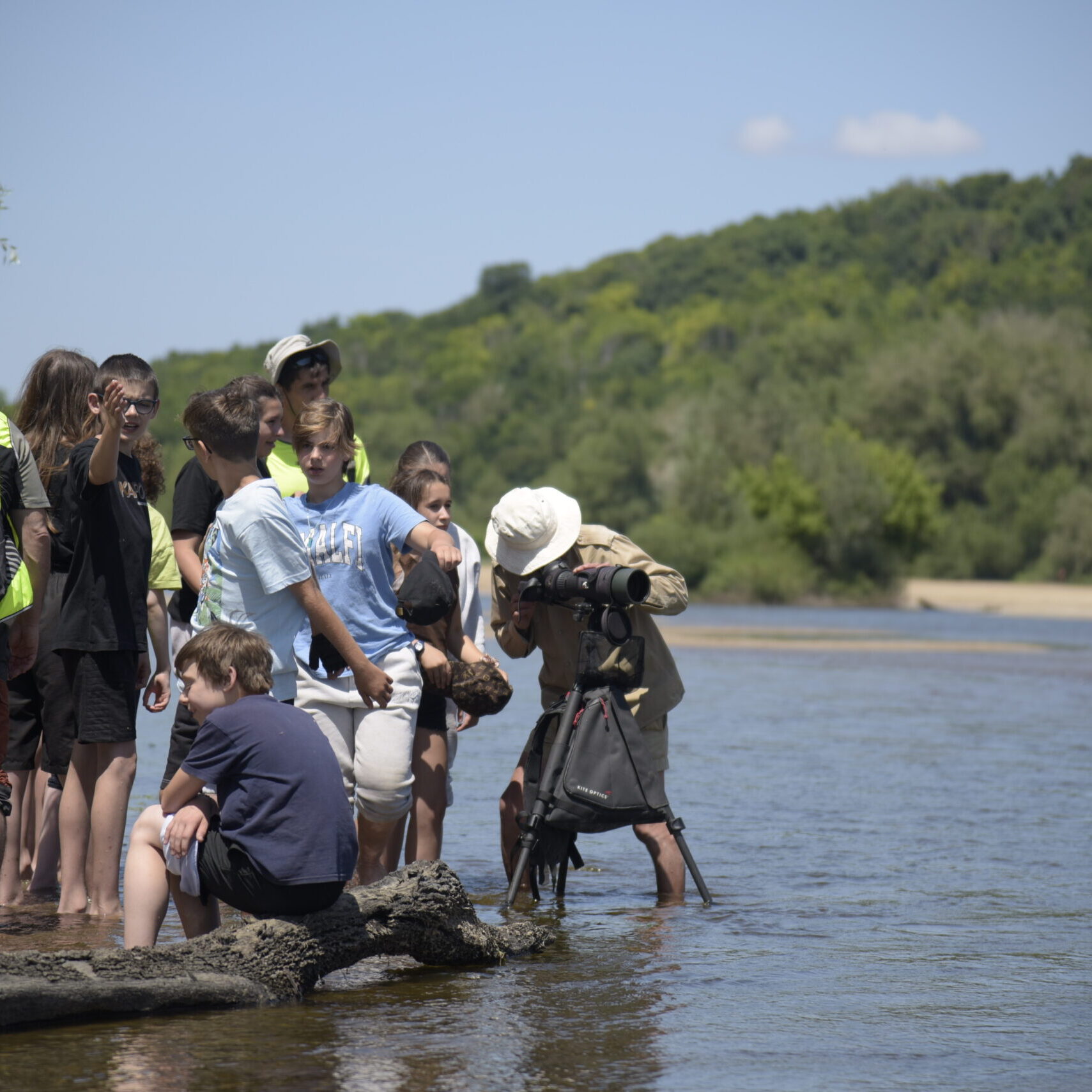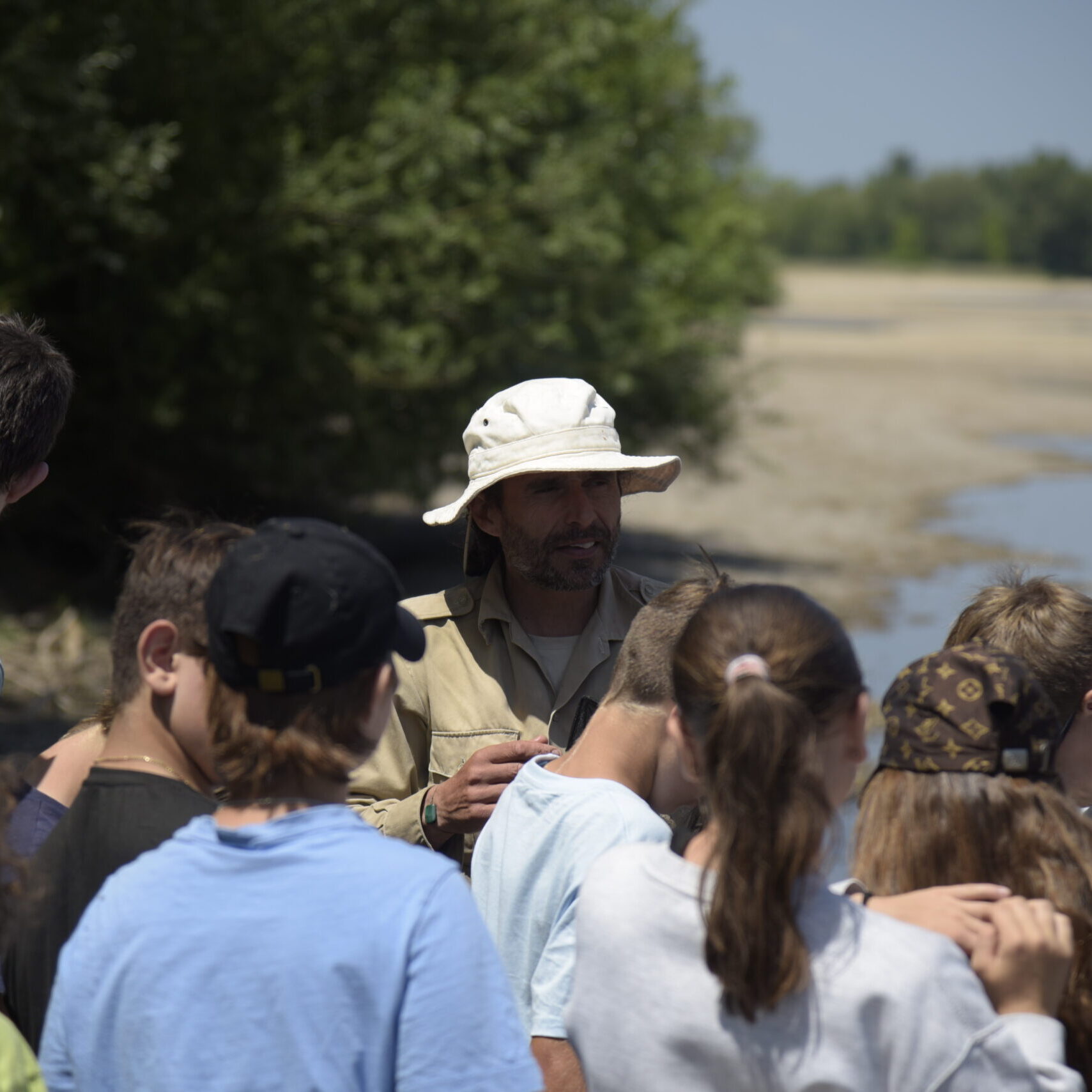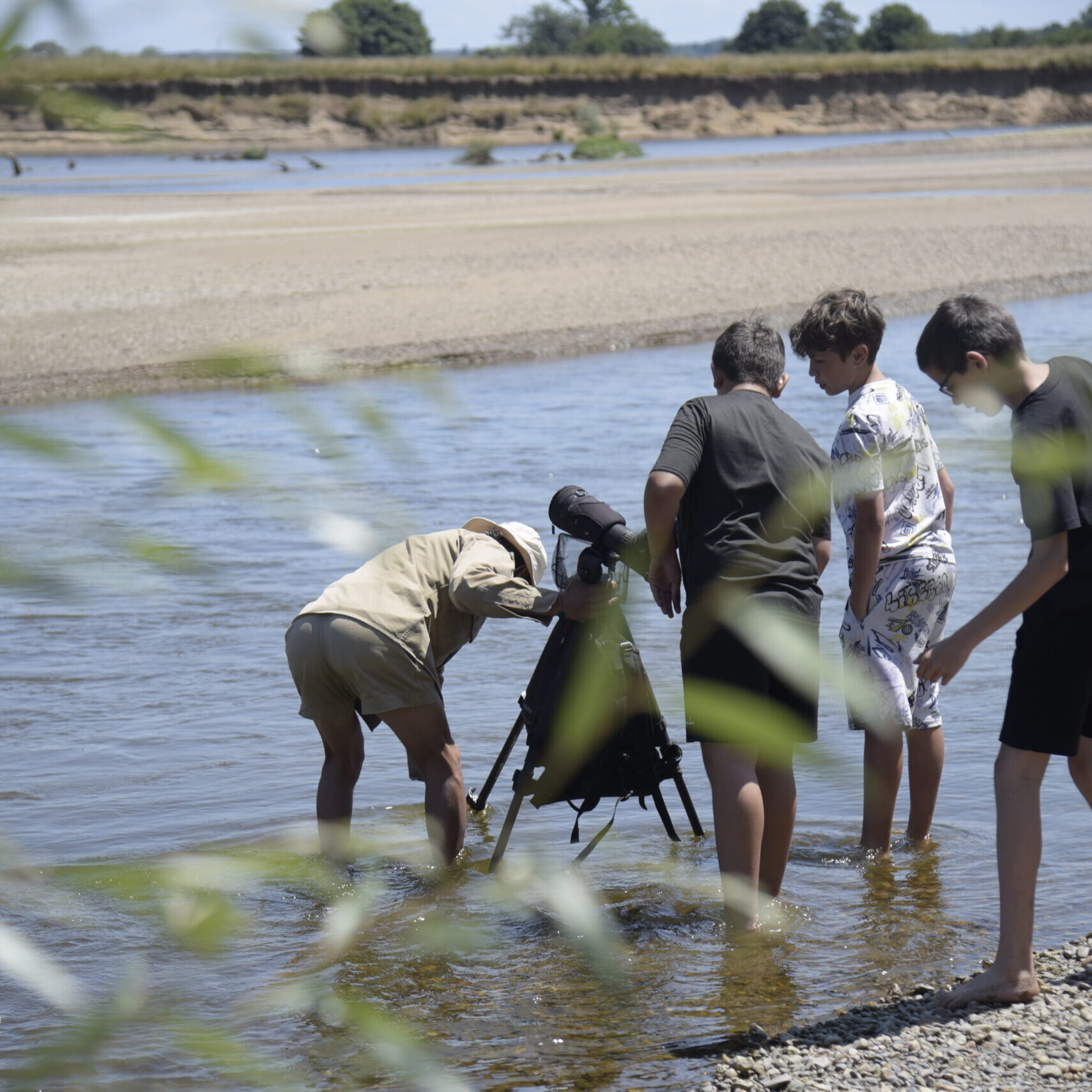 Sur la rive opposée, le guêpier d’Europe n’a pas échappé à l’œil de Christophe Page. « Approchez-vous et regardez », souffle le guide naturaliste aux collégiens qui l’entourent. Dans la longue-vue, la silhouette ronde et multicolore posée sur une branche se détache dans l’azur du ciel. Hirondelle de rivage, gravelot, héron, la faune abritée dans la marqueterie de bancs de sable, de forêt alluviale, de hautes herbes et d’eau révèle quelques secrets aux élèves d’ULIS et de 6e SEGPA (2) du collège Paul-Langevin (Fourchambault).