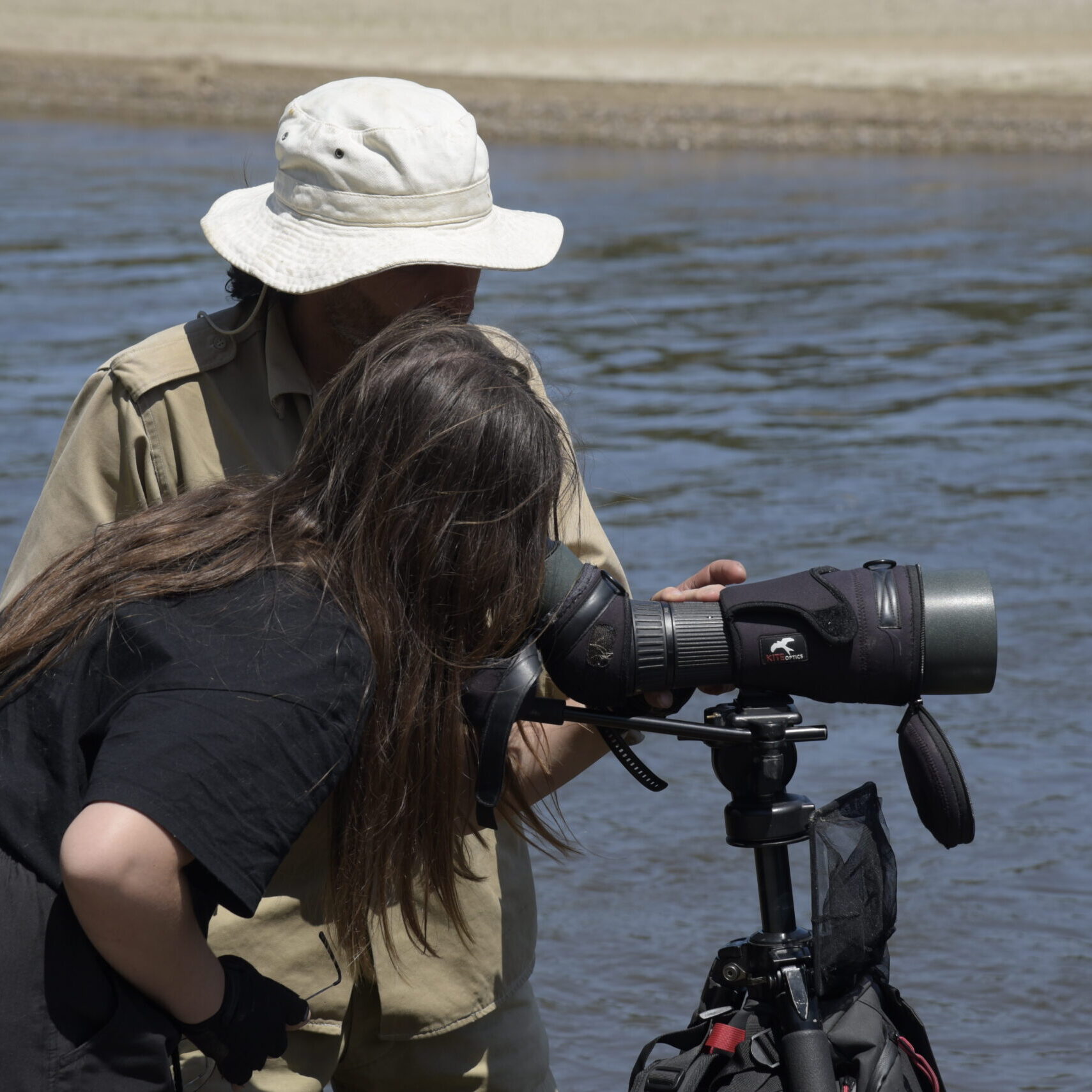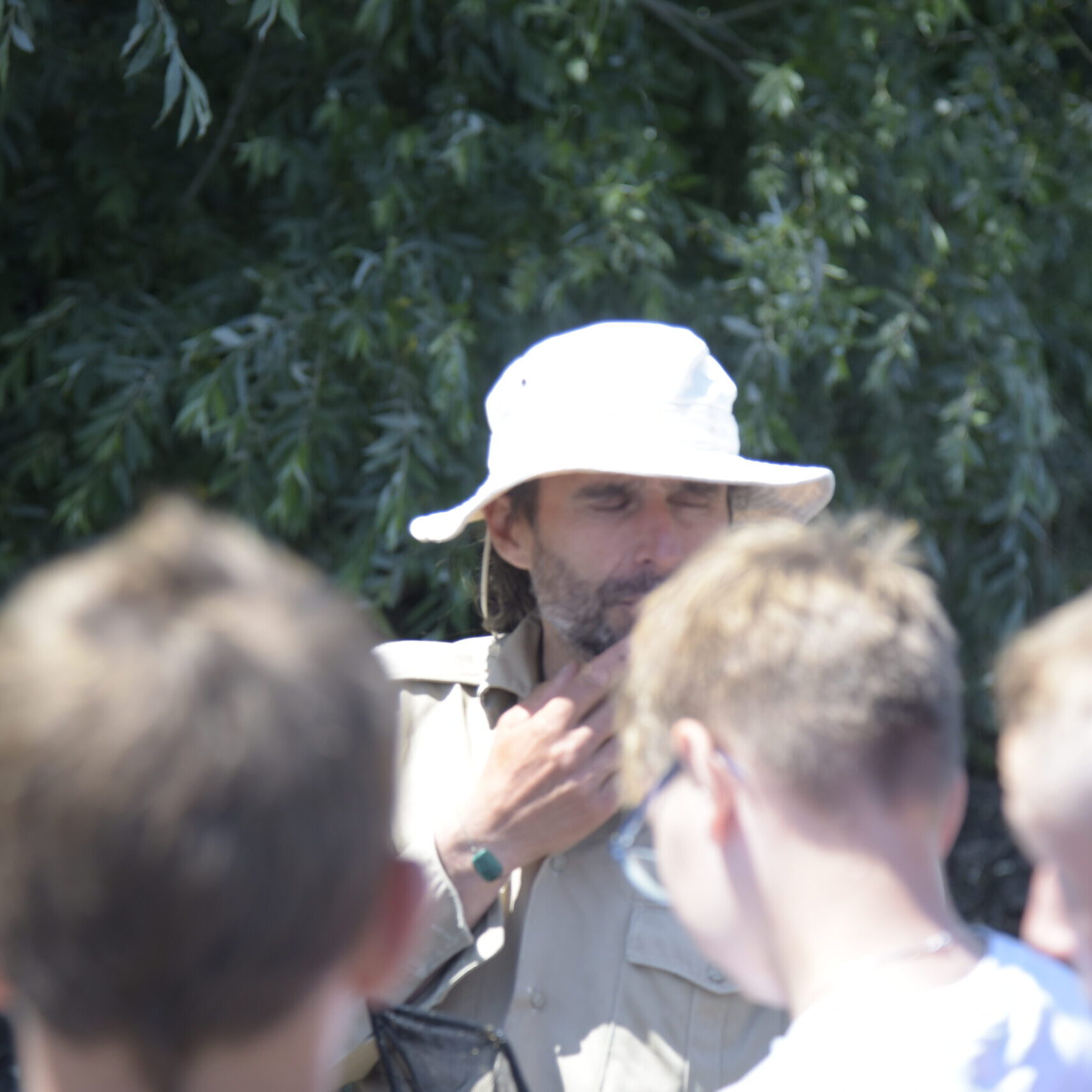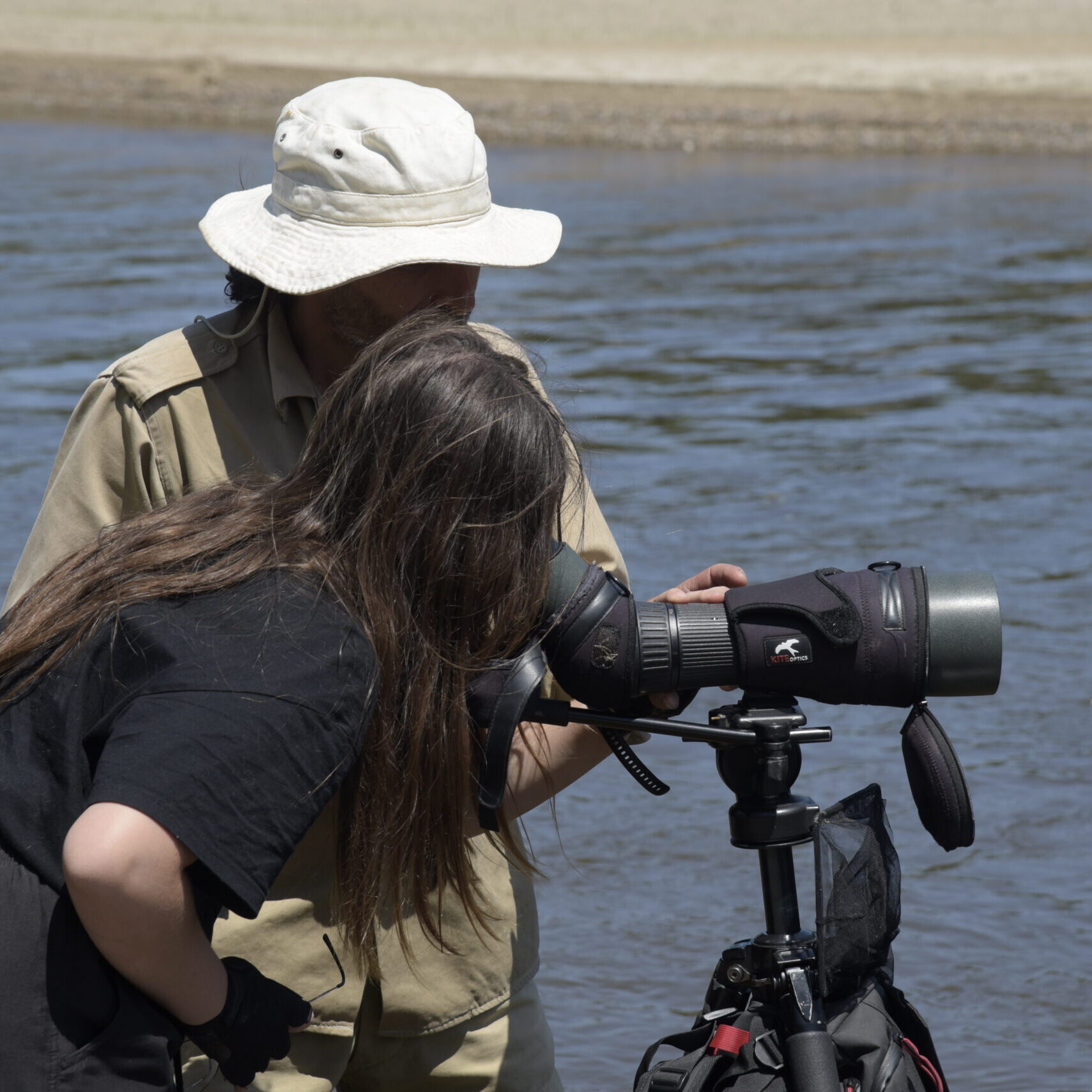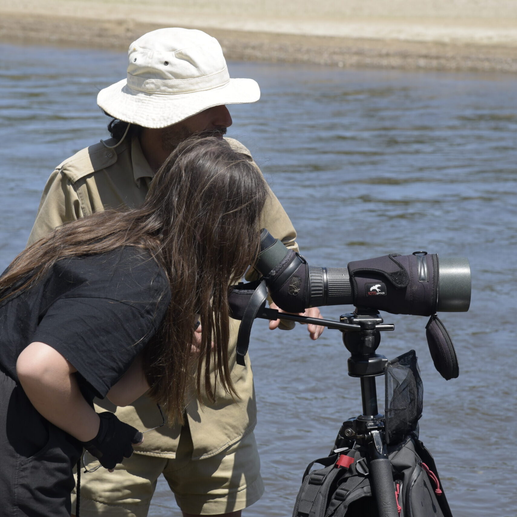 Sur la rive opposée, le guêpier d’Europe n’a pas échappé à l’œil de Christophe Page. « Approchez-vous et regardez », souffle le guide naturaliste aux collégiens qui l’entourent. Dans la longue-vue, la silhouette ronde et multicolore posée sur une branche se détache dans l’azur du ciel. Hirondelle de rivage, gravelot, héron, la faune abritée dans la marqueterie de bancs de sable, de forêt alluviale, de hautes herbes et d’eau révèle quelques secrets aux élèves d’ULIS et de 6e SEGPA (2) du collège Paul-Langevin (Fourchambault).