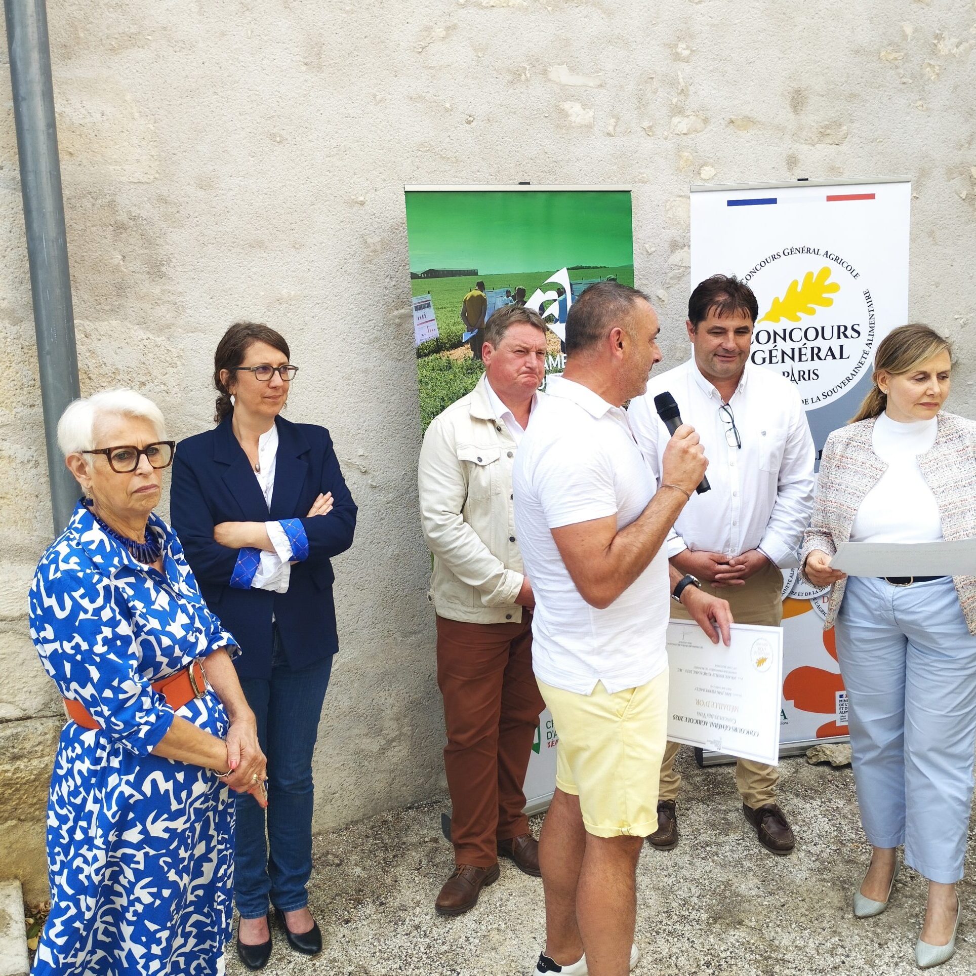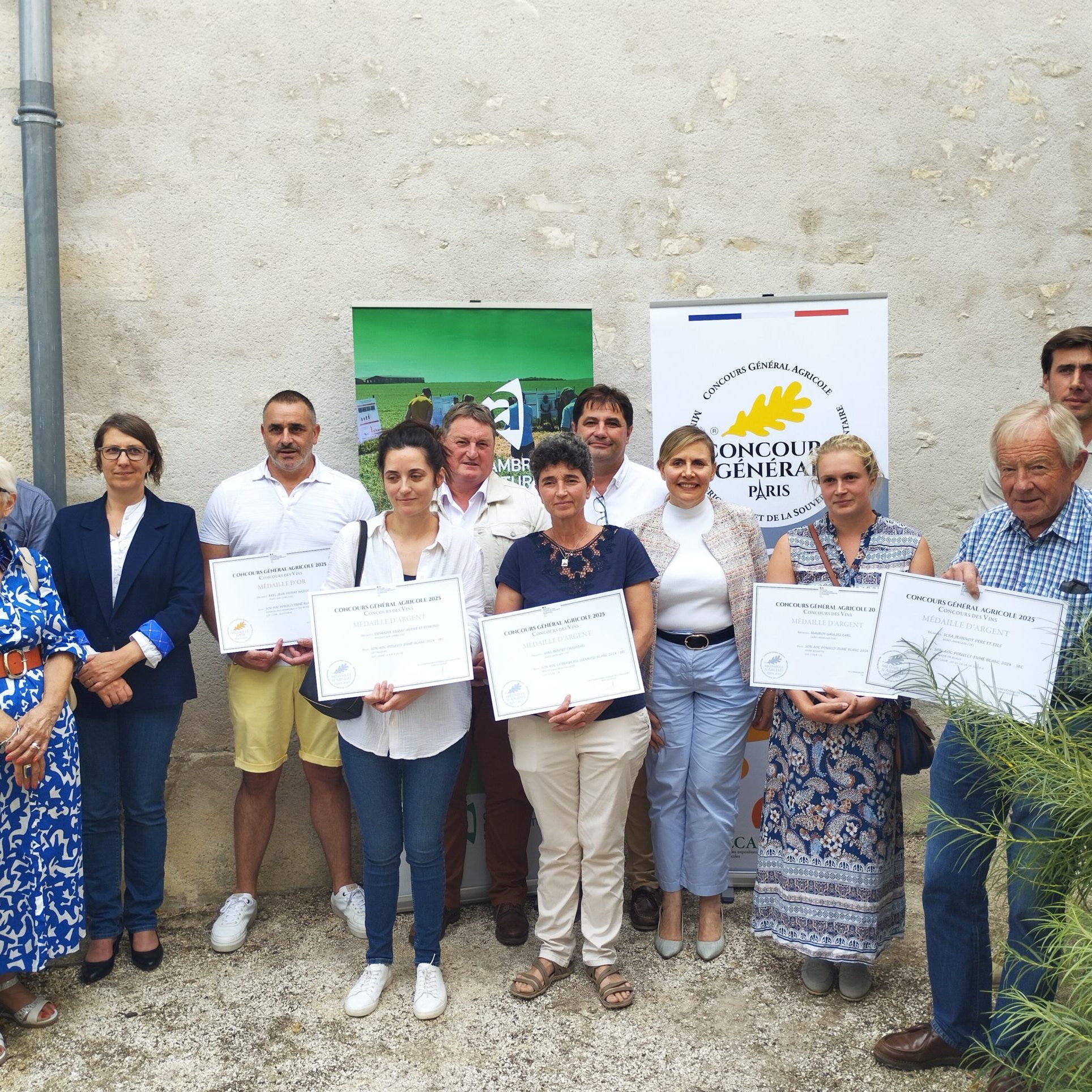 .Décernés en février lors du Salon international de l’agriculture, à Paris, les prix du Concours général agricole ont été remis aux viticulteurs pouillyssois lauréats, le 22 juillet à Pouilly-sur-Loire, par Cyrille Forest, président de la Chambre d’agriculture de la Nièvre. À ses côtés, la préfète Fabienne Decottignies, la sous-préfète Delphine Bonnin, Thierry Guyot, conseiller départemental délégé à l’agriculture et à l’alimentation de proximité, et Pascale de Mauraige, conseillère départementale du canton.