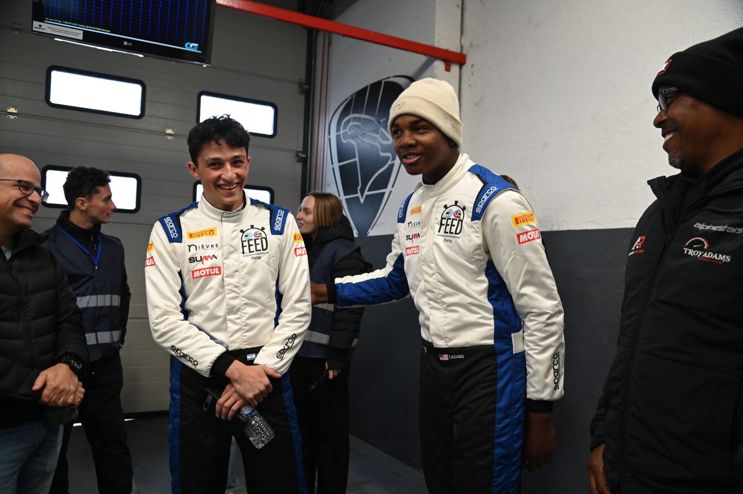 Dans le paddock du Circuit Nevers-Magny-Cours, les conversations chuchotées troublent à peine l’atmosphère studieuse, concentrée. Le calme avant le tonnerre mécanique. Couvés du regard par leurs proches, observés par les journalistes et les officiels, les héros du jour gardent les émotions sous contrôle, malgré l’enjeu, et leur jeune âge. Les Français Sacha Bouder (17 ans), Matthéo Dauvergne (14 ans) et Clément Outran (16 ans), l’Américain Truly Adams (14 ans), l’Israélien Yuval Rosen (18 ans) et le Suisse Mathys Saura-Pictet (16 ans) sont à quelques heures du Graal : remporter le Volant F4 FEED Racing, sésame pour une saison de championnat F4, un pas de géant vers leur rêve commun d’une carrière en sport automobile. Alignées, les six F4 Mygale (1) blanches, toutes identiques pour garantir l’équité, portent chacune leur nom et leur drapeau – comme pour les grands.