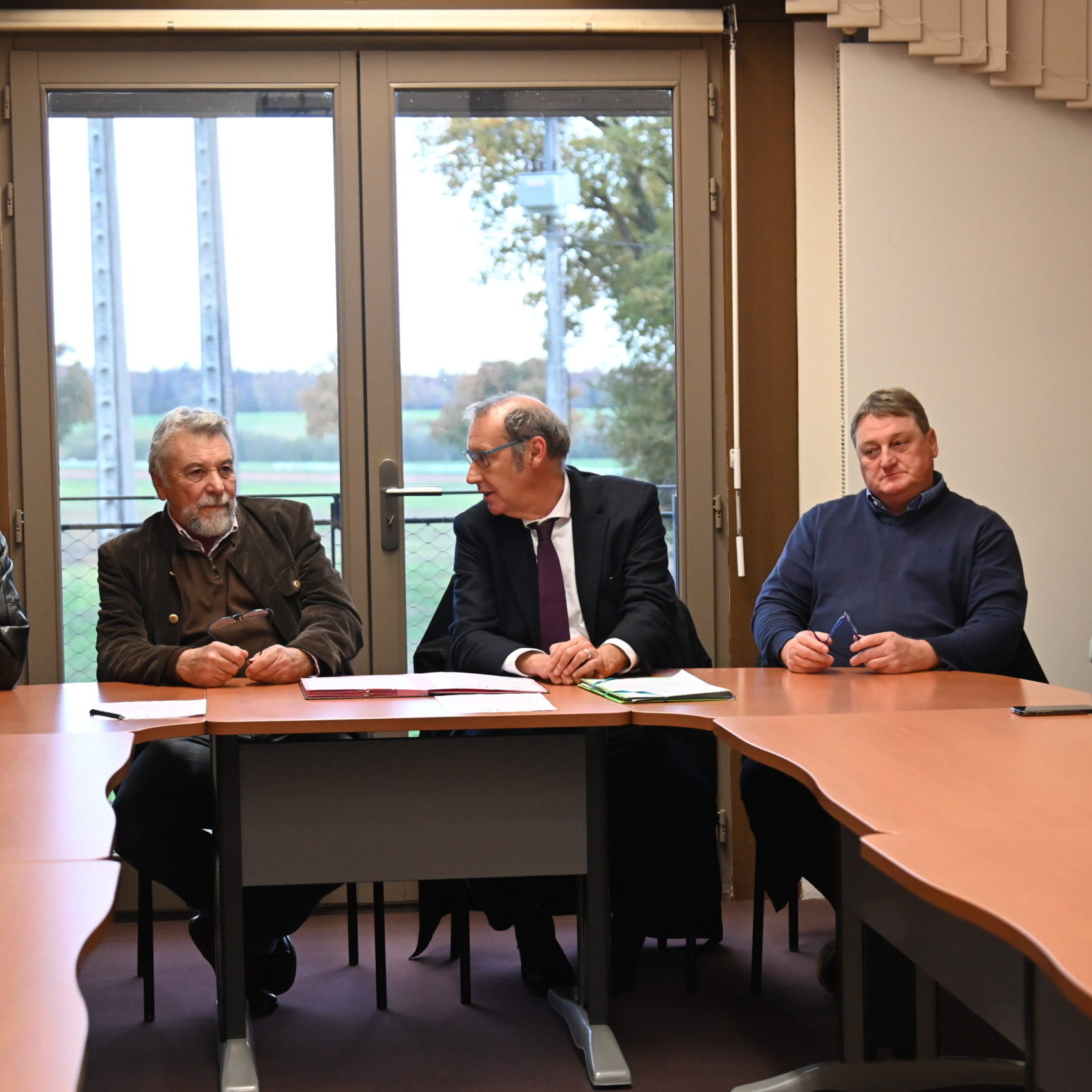 Autour de la table, Fabien Bazin, président du Conseil départemental, Daniel Barbier, vice-président en charge des finances (et président de l’Union amicale des maires de la Nièvre), Thierry Guyot, conseiller délégué à l’agriculture, Bernard Perrin, président de la Fédération départementale des chasseurs, et Guy Roblin, 1er vice-président, ont souligné de concert la portée d’une convention inédite par son ampleur. Au-delà du « soutien politique » aux missions principales des chasseurs – la régulation des espèces et la lutte contre les dégâts sur les cultures –, ce sont les « compétences » des chasseurs nivernais qui sont au cœur de ce partenariat : « Nous sommes prêts à apporter un service, une expertise, grâce à nos 12 salariés et à tous nos bénévoles », explique Bernard Perrin. « Nos sociétés de chasse constituent un maillage important du territoire. C’est pourquoi je suis content de ce rapprochement avec le Conseil départemental, qui arrive à un moment où l’argent est de plus en plus rare. Or, nous avons beaucoup de projets, des choses qui peuvent se faire sans trop d’investissement. Nous avons la volonté d’être utiles, et présents si l’on a besoin de nous. »