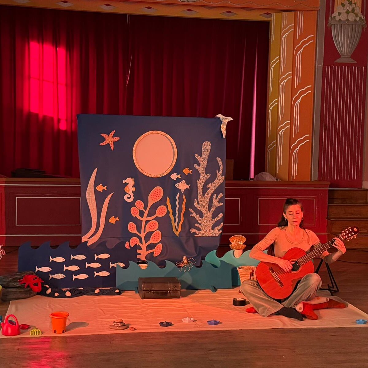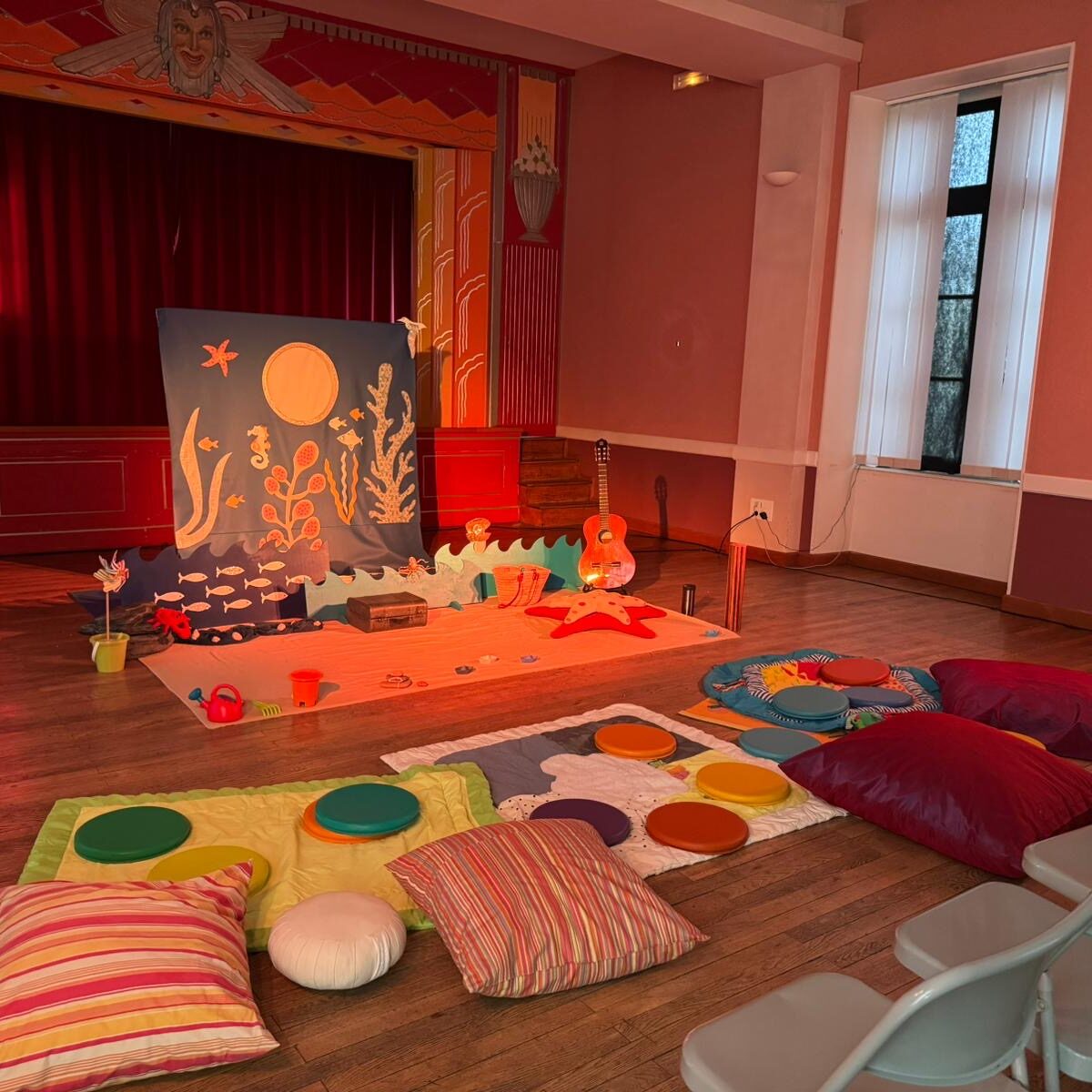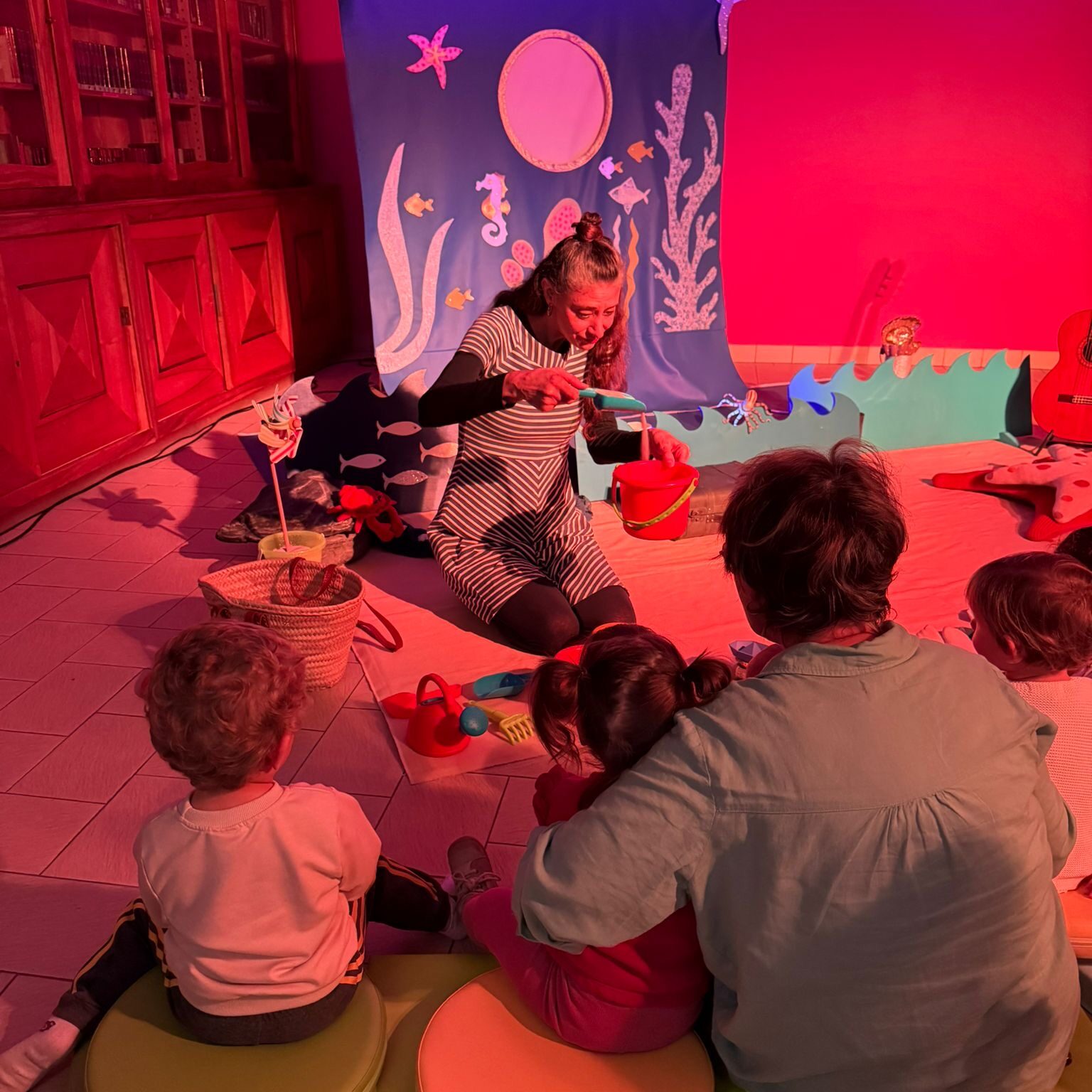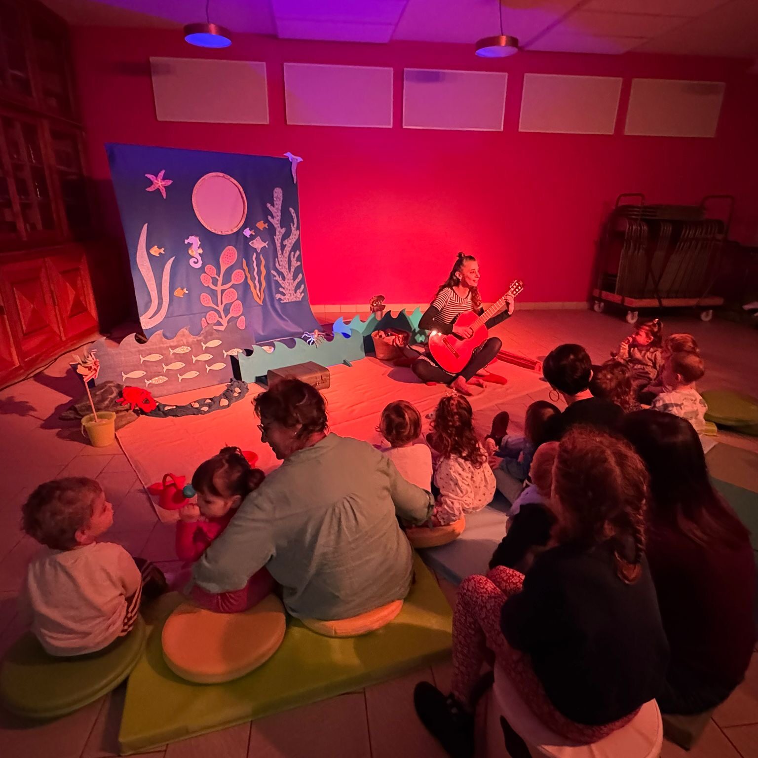 Nathalie Rigalleau a écrit et interprété ce délicat spectacle musical qui s’inscrit dans Premières Pages, une initiative nationale de sensibilisation des familles à la lecture dès le plus jeune âge. La Bibliothèque départementale de la Nièvre propose des actions de formations pour les personnes travaillant avec des tout-petits ; elle sélectionne et donne aussi des collections de livres minutieusement choisis pour les bébés, permettant d’animer les salles d’attente des lieux de Protection maternelle et infantile. La bibliothèque diffuse également des spectacles spécialement conçus, ainsi que du mobilier dessiné pour les tout-petits, permettant de vivre des moments de lectures sensorielles précieuses avec parents et éducateurs.