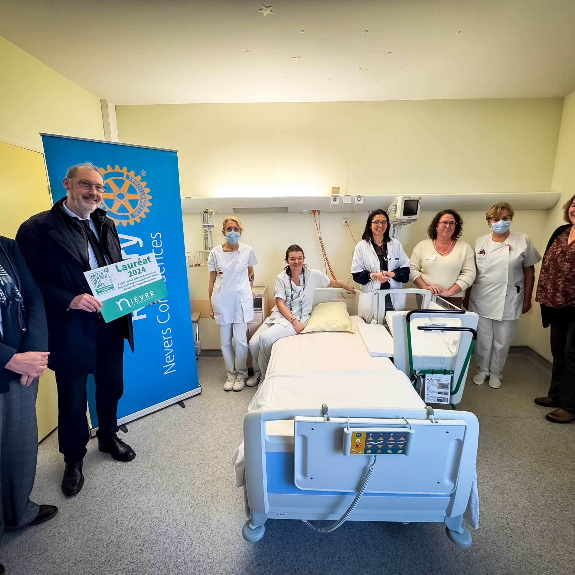 Installé dans le service Pédiatrie en novembre dernier, le Cododo a été accolé à un lit, et permet ainsi à une maman d’allaiter plus facilement. Il a été inauguré, lundi 19 janvier, en présence de Fabien Bazin, président du Conseil départemental, et de Blandine Delaporte, vice-présidente en charge du fonds d’innovation et d’investissement territorial, aux côtés de Charlotte Milheu, coordinatrice de l’association, de Janick Milheu, bénévole, et du Rotary Club Nevers Confluence, représenté par sa présidente Élisabeth Lainé et de sa secrétaire Sabine Manteau, qui a participé au financement du lit.