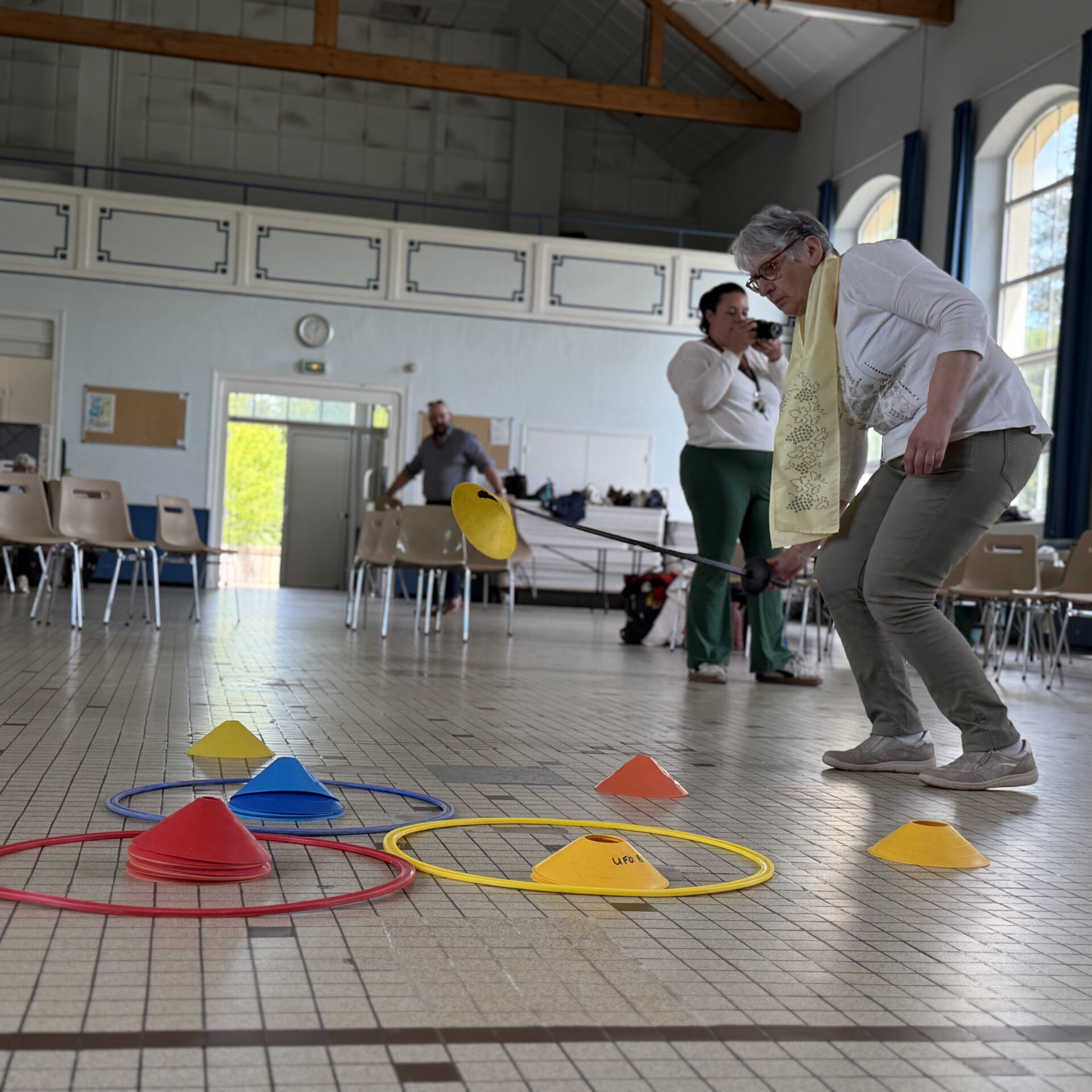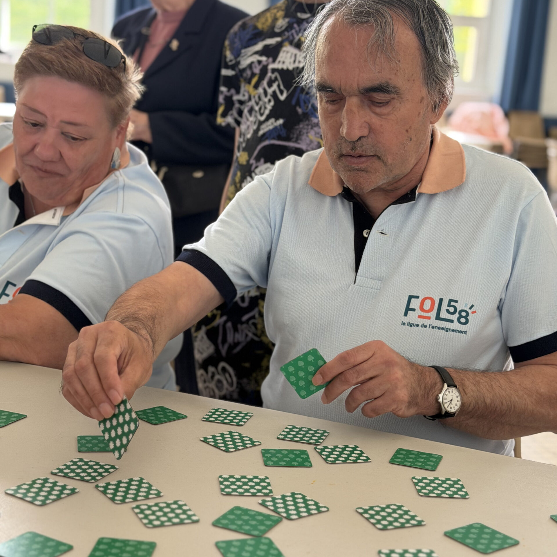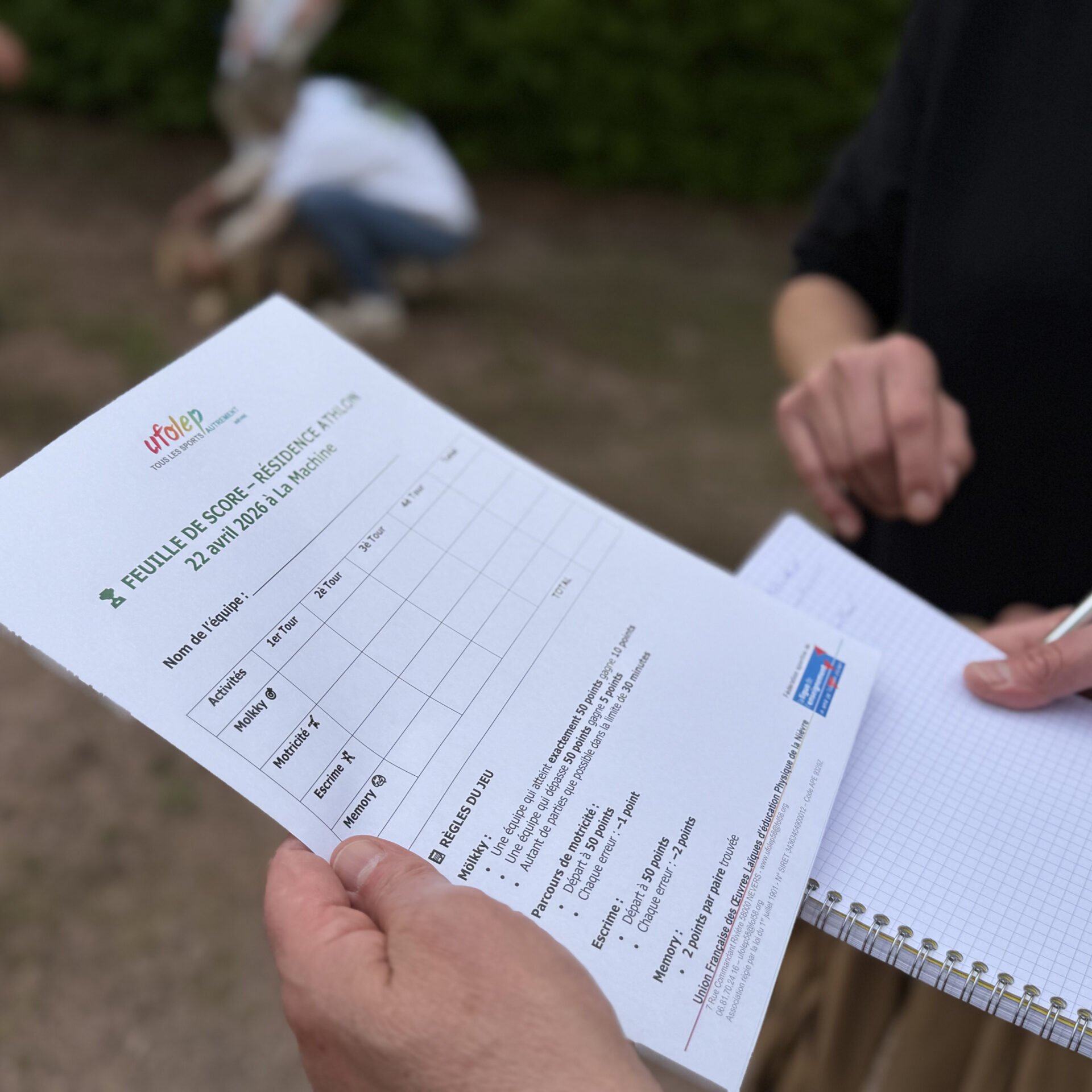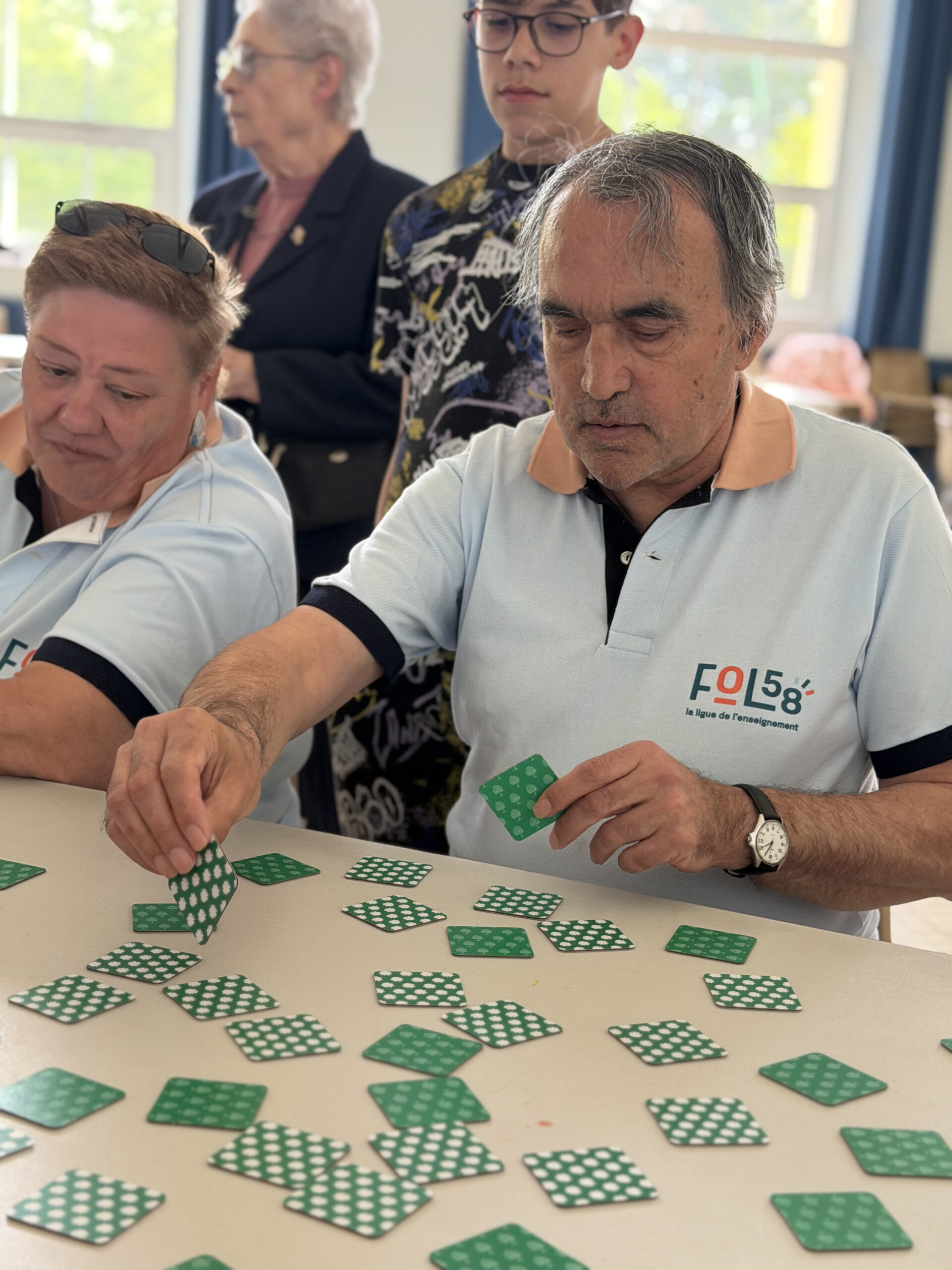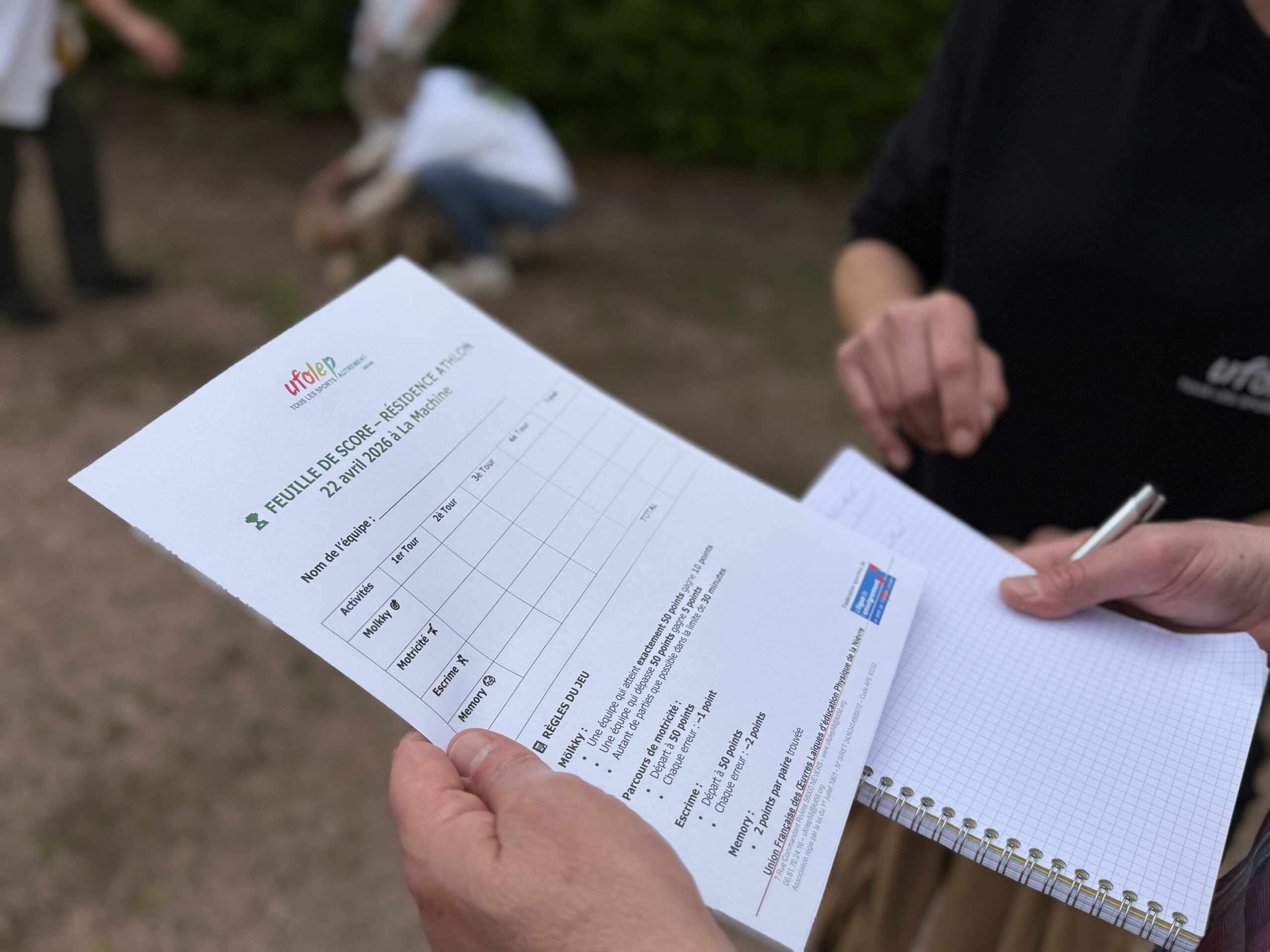 Parties de molky et parcours de motricité à l’extérieur, escrime pour la dextérité et Memory pour… la mémorisation ont mobilisé les aptitudes et la solidarité des équipes, accompagnées de jeunes des centres sociaux de Varennes-Vauzelles et de La Machine. Adeline Barré, déléguée départementale de l’UFOLEP, et Quentin Devoucoux, animateur sportif, ont donné le tempo d’un rendez-vous qui avait débuté par une belle tablée, réunissant la quarantaine de participants autour d’un repas préparé par le prestataire de la Maison des Roses.