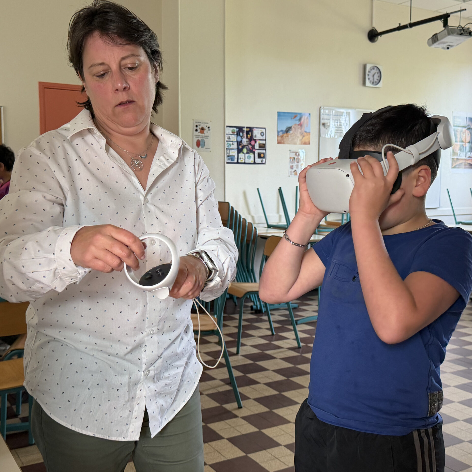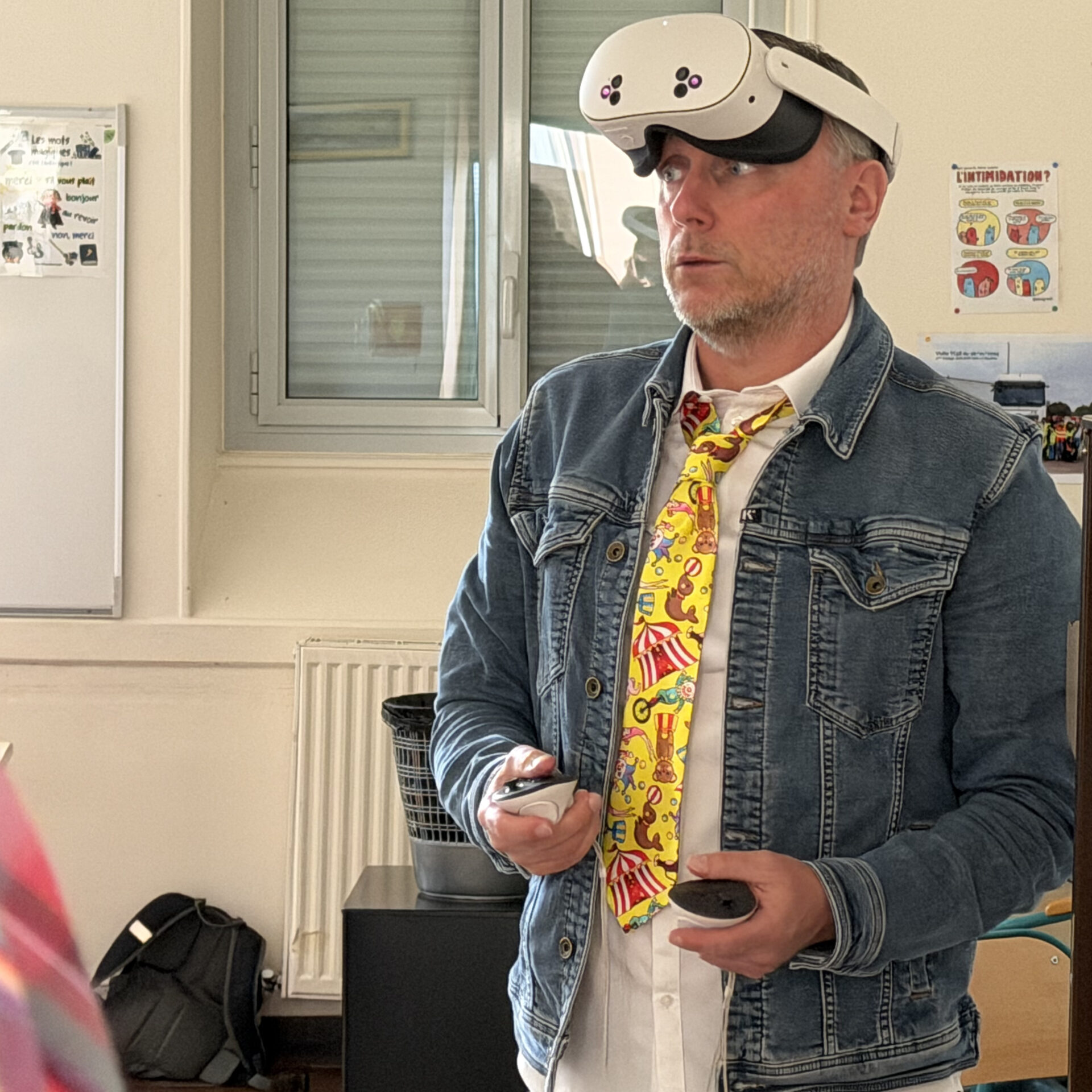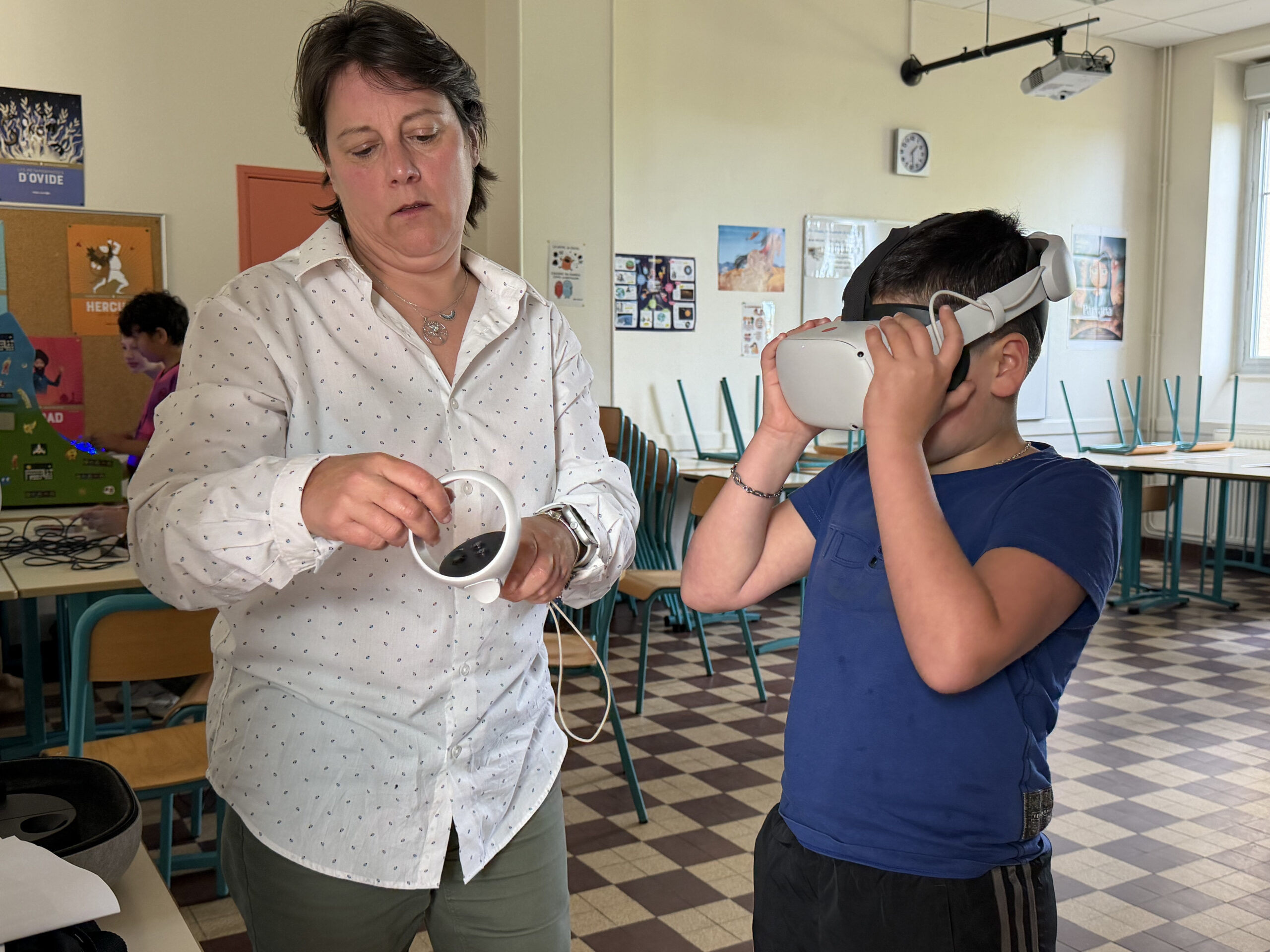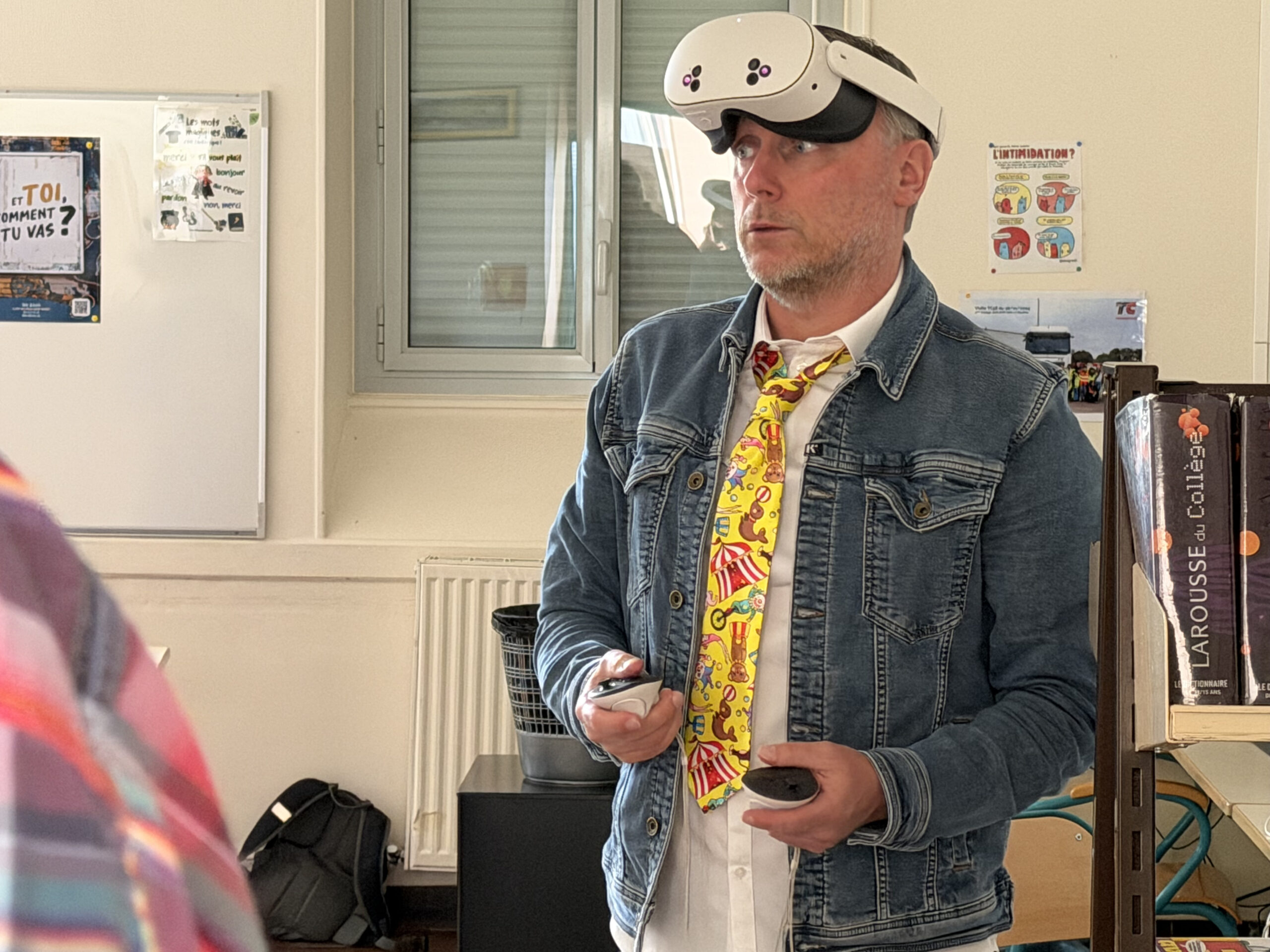 Un casque de réalité virtuelle sur les yeux, la petite blonde avance d’un pas hésitant dans le hall du collège : « J’ai le vertige ! », souffle-t-elle, prise dans l’hyperréalisme du jeu Richie’s Plank Experience qui l’envoie tout en haut d’un immeuble de 80 étages marcher sur une planche au-dessus du vide. Autour d’elle, d’autres élèves sautillent d’impatience en attendant leur tour. À quelques mètres, dans la cour, c’est l’atelier drones qui suscite la curiosité.