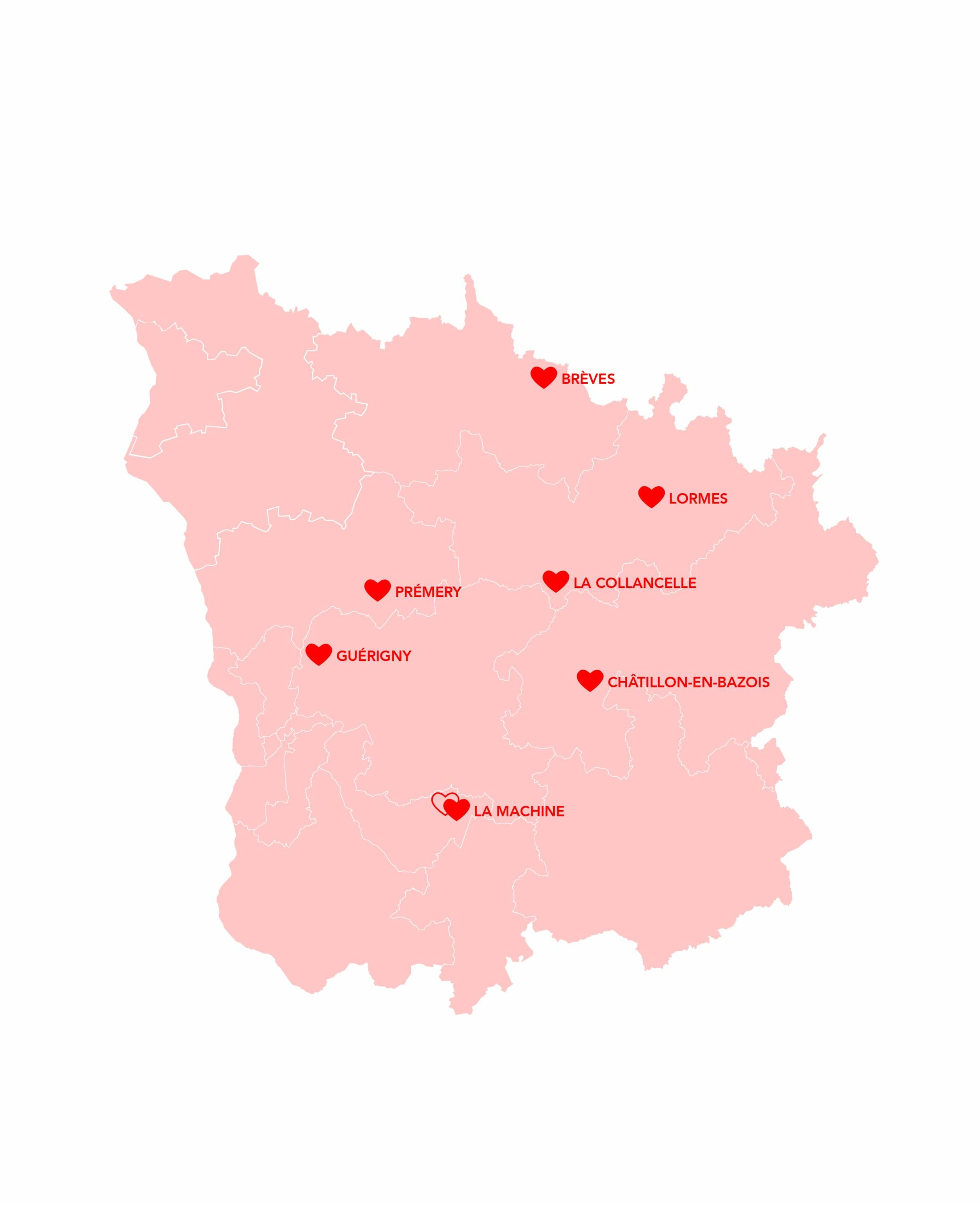 Parmi vos propositions, les 57 sites ayant remporté le plus de suffrages feront, suite à une étude de faisabilité sur le plan légal, l’objet d’une implantation progressive des panneaux #Embrassezvous58 sur le territoire.